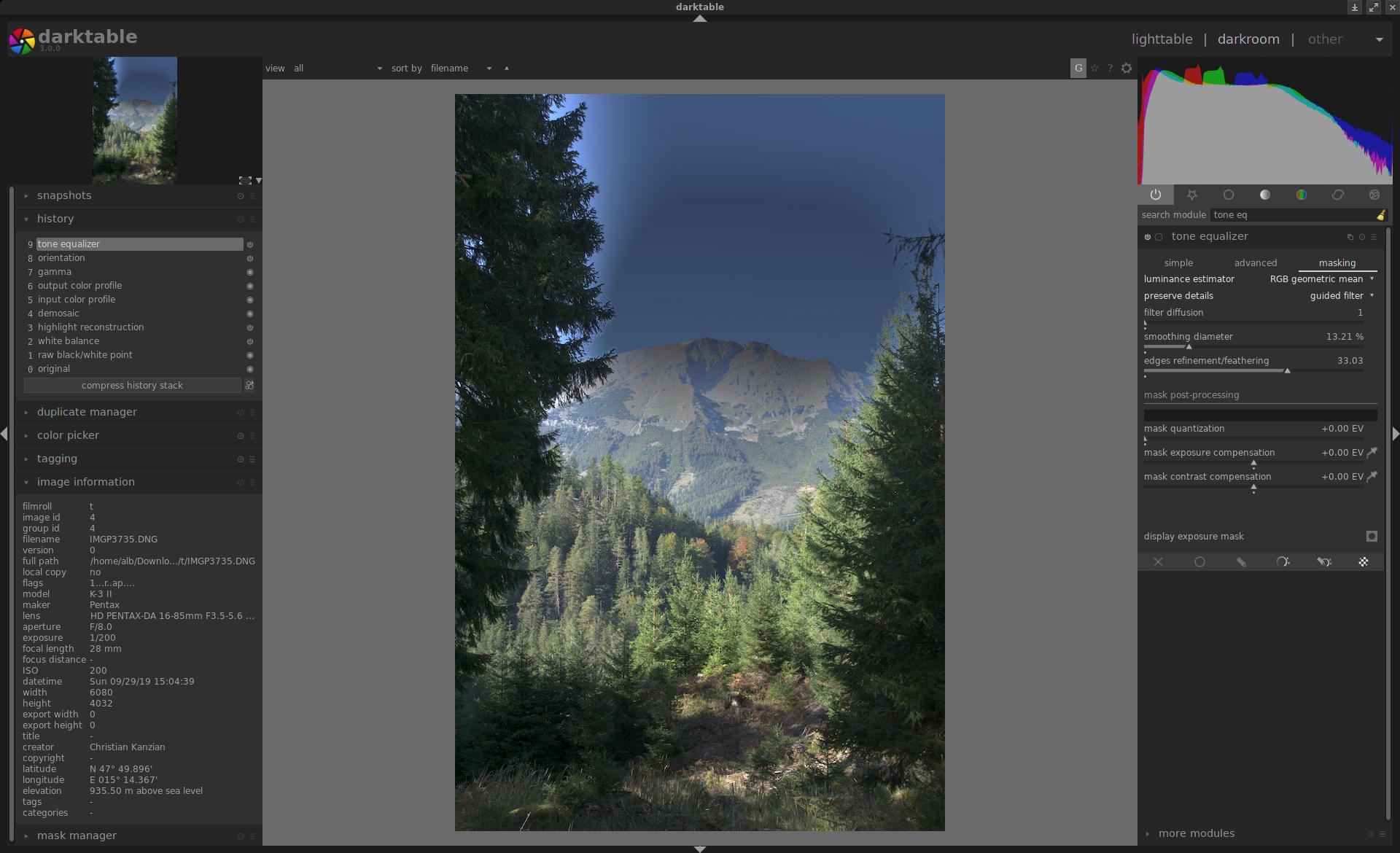 The tone equalizer seems to be very powerful but also complicated. The combination of tone equalizer and filmic rgb requires a lot of effort to understand and master – no complaints about that, but is it worthwhile?
