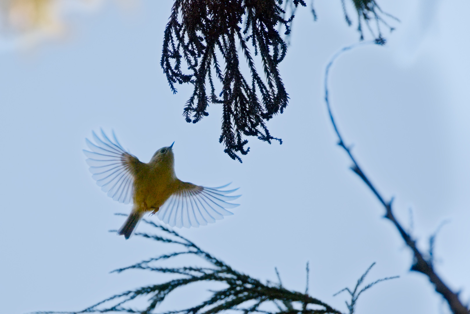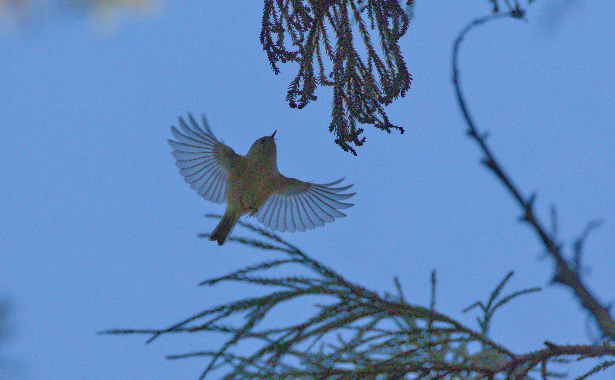 In addition to darktable I used GIMP for cleaning up the messy parts of the image. The bird seems to be a Goldcrest - Regulus regulus - キクイタダキ.