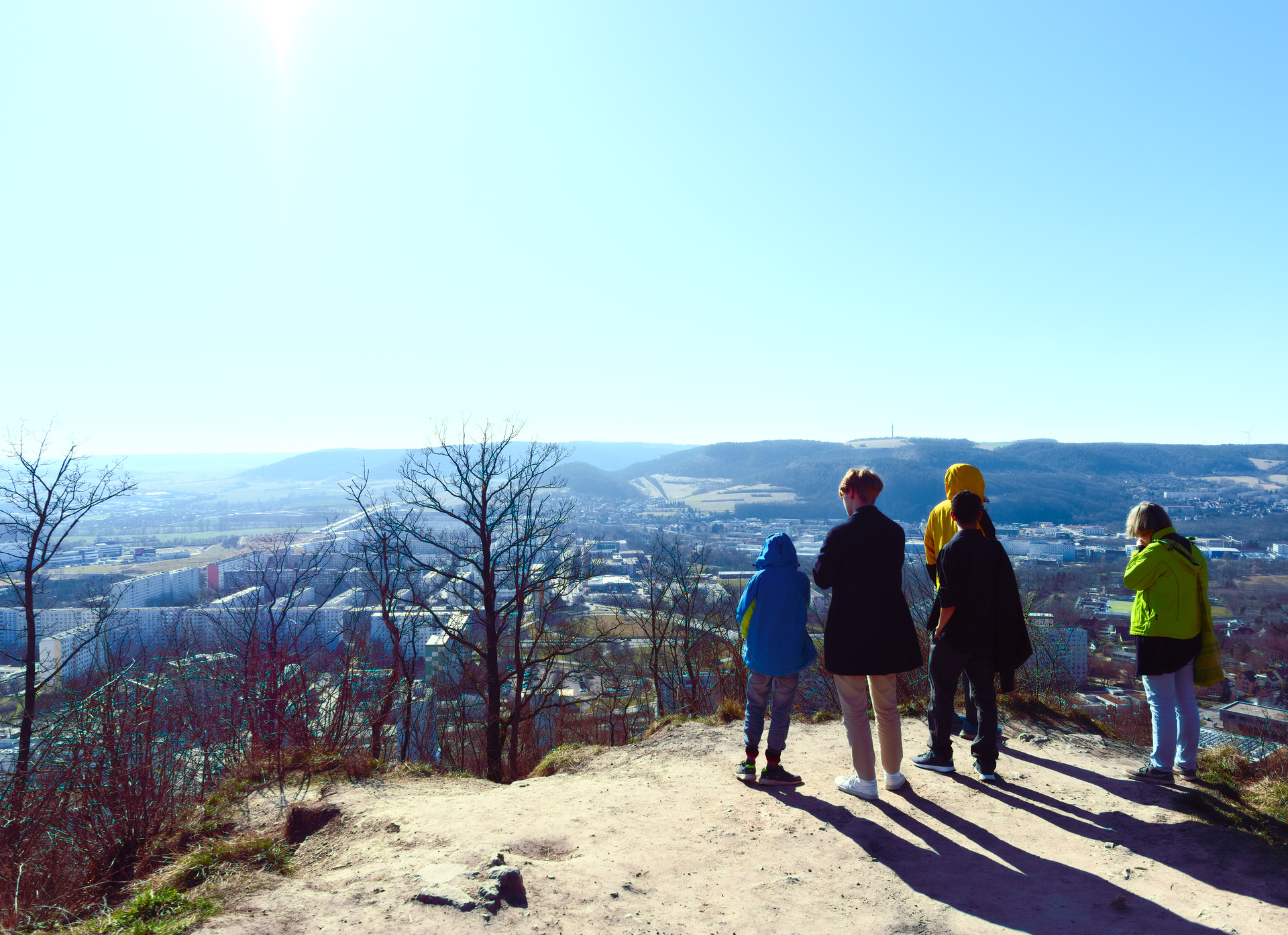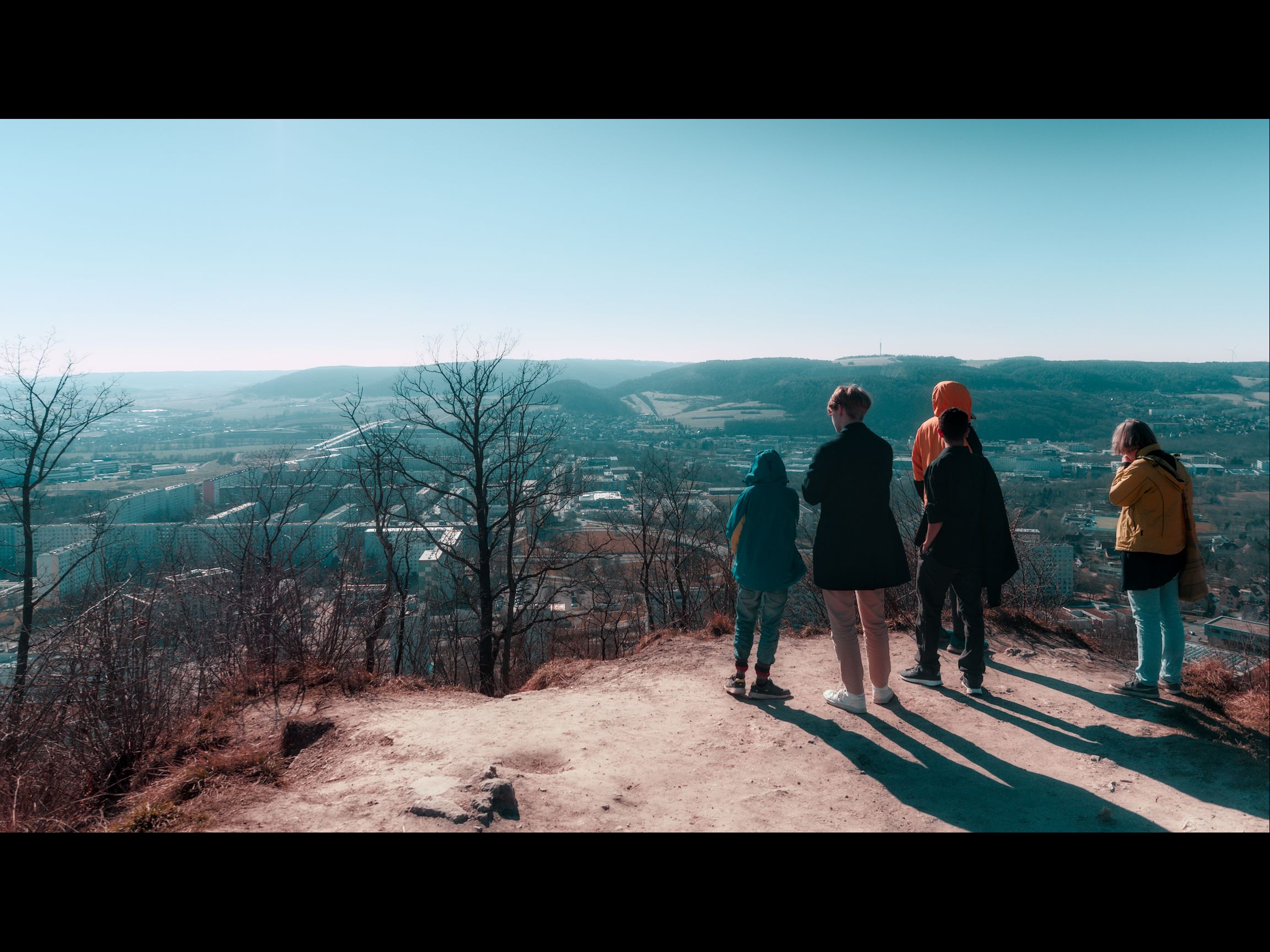 Days without any clouds in the sky are very rarely in Germany. The chilly wind on that day additionally cleared the athmosphere, the glittering sun made hard shadows. So the sun in the background and the moon-like land in the foreground inspired me to an unreal look, as if those people are standing on the Moon.