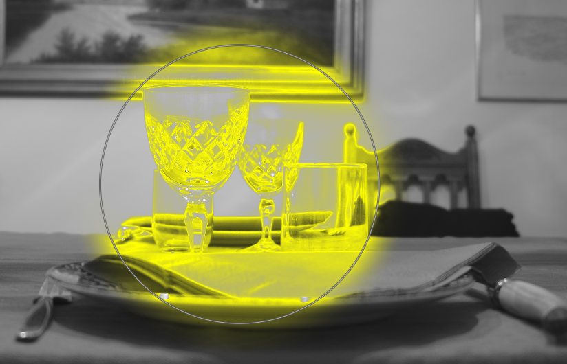 I bet it could well be a question of selecting an area with the drawing tools in order that the former result appears only inside the new selection, don’t you think ?
