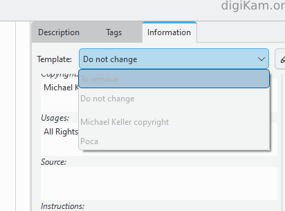 The next time you launch DigiKam, you will only need to select the template from the drop-down menu.