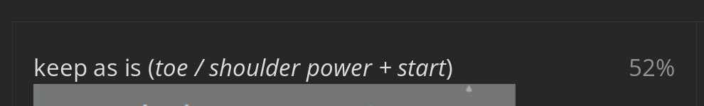 So, for now, toe / shoulder power remain.