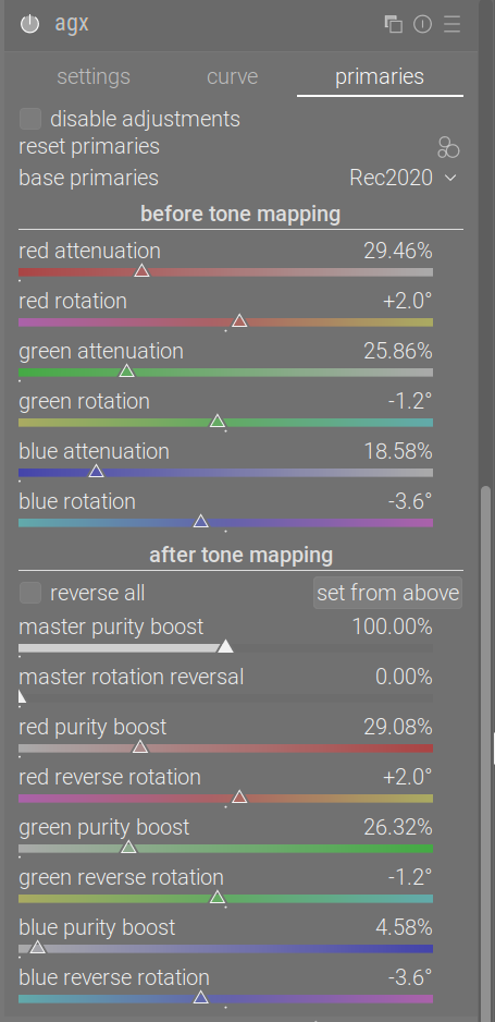 Now, I do not know how difficult would be to redesign/code the Agx primary sliders same as color balance RGB ( I think similar redesign maybe will also be desirable for primary, possibly sigmoid --but that is not for here to request).