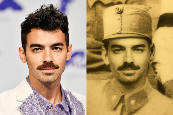 TL;DR: A contemporary pop star was recognized in a photo from 1918 (First World War soldiers) in a recent exhibiton. The likeness was perfect. The explanation turns out to be ML-based “sharpening” algorithms filling in blurry images with whatever they can get their hands on.