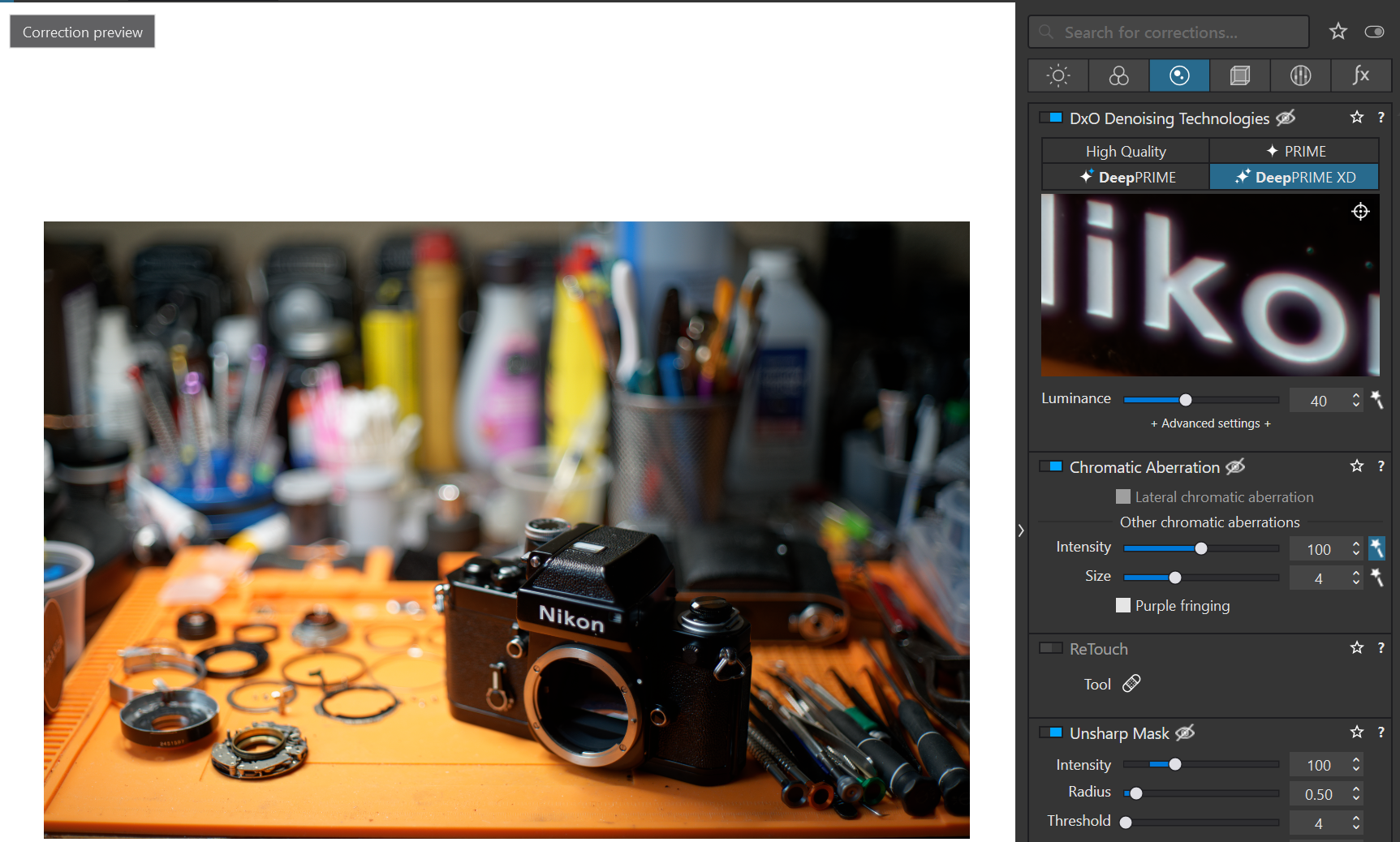 Continue working on the denoised image with all operations from the previous edit copied over