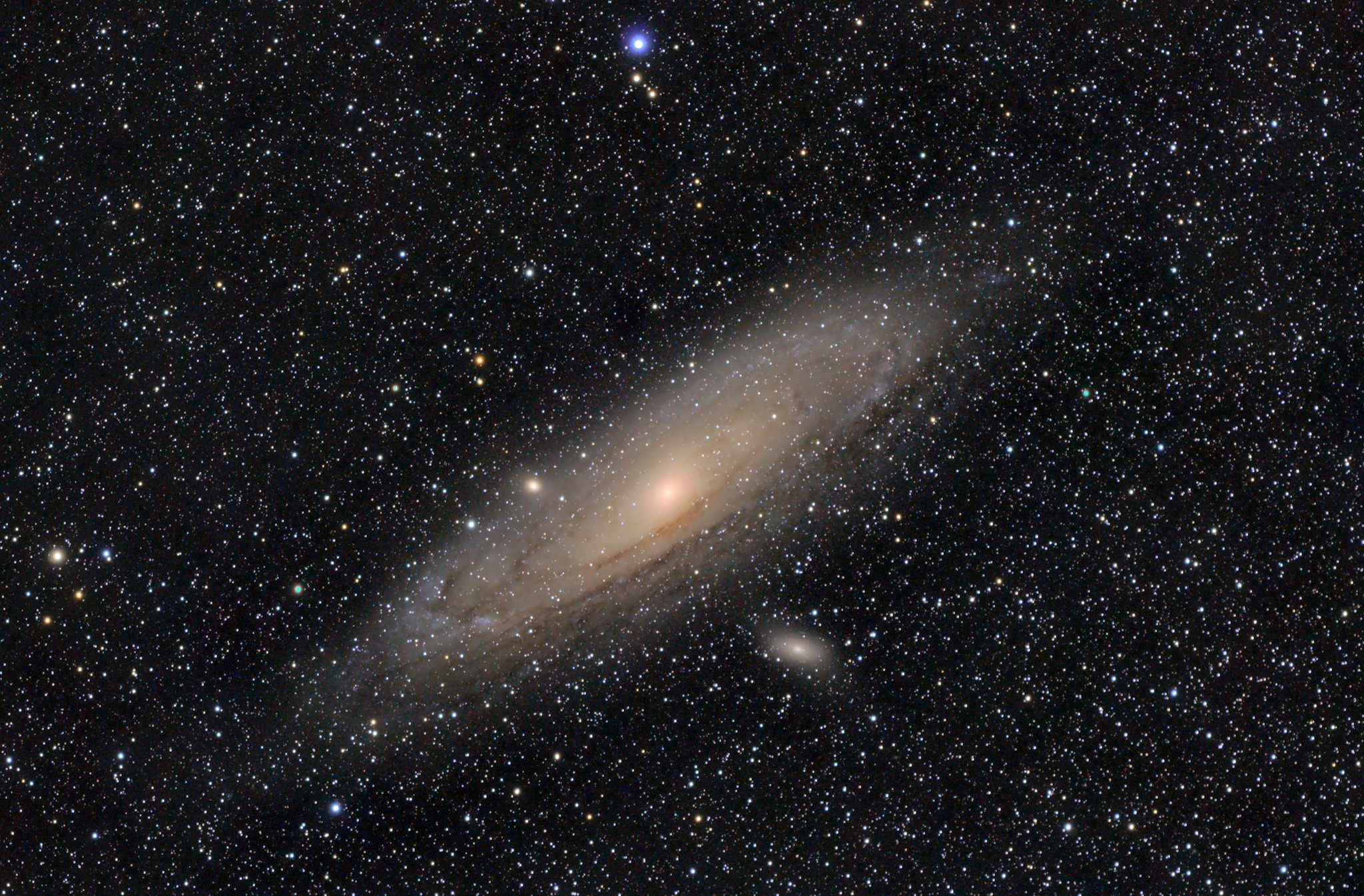 About an hour of data stacked in Siril with some touching up in GIMP and Darktable. Used my Astro-Tech AT-60EDP again but this time I ran an old Nikon D3200 body I pulled out of the trash back in May. Someone from a media lab was surplusing a van full of old entry level Nikon gear. The joys of working next to an eWaste facility. Will probably eventually IR convert this D3200.