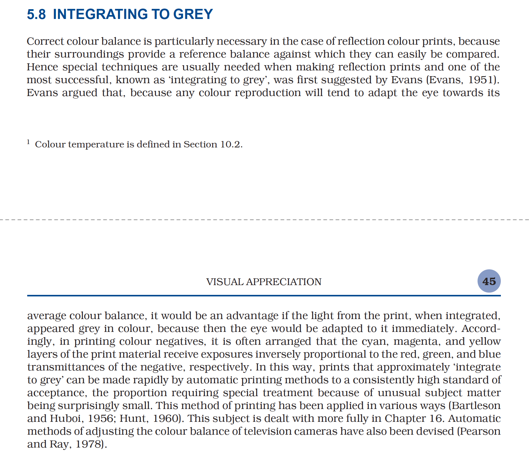 Since we don’t have the paper, it should be the algorithm’s task to compensate for the gaps between the channel curves. In order to do that it needs to establish the boundaries of the straight part of the curve and its slope, for each channel. Then, using these values, calculate a correction such that all three curves are aligned along their straight part. This would mean greys along most of the midtone area become neutral, that is, well, grey. That’s what would “integrating to grey” mean in the digital application, I think.