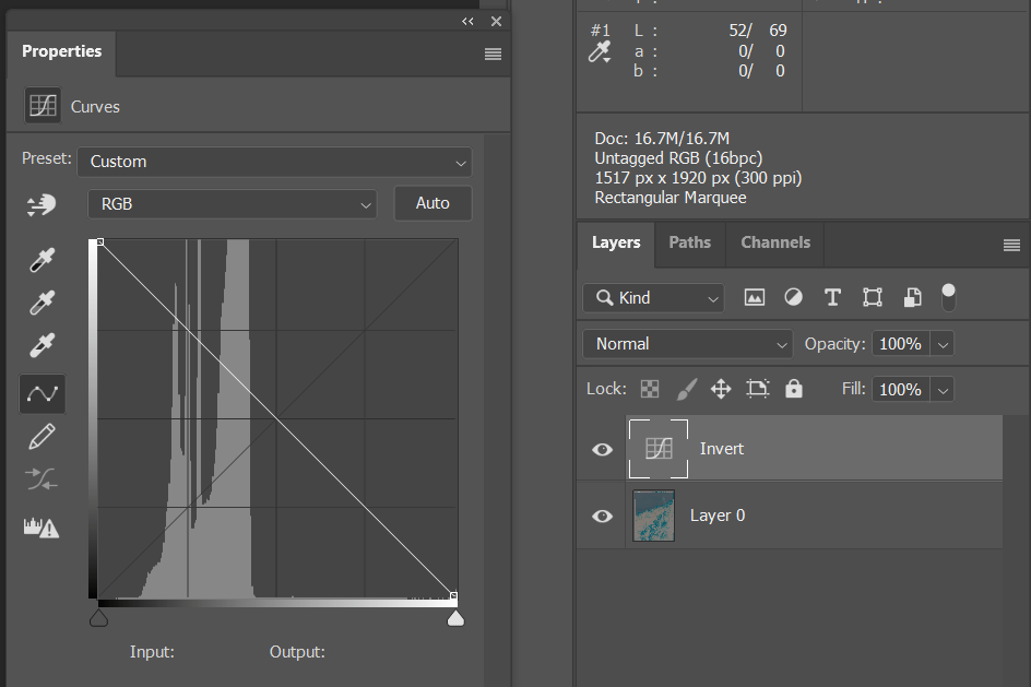 You used a curves adjustment that you invert. Why not just insert an ‘invert adjustment’, it exists?