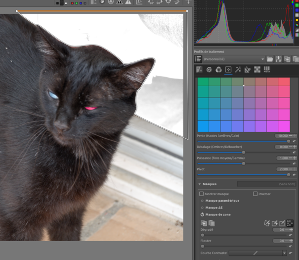 Hi, the goal would be to change the color of an undesired zone. No problem to get a pure black with the slope slider on the left end, but when we move the slider on the right end, the zone never becomes pure white, so we always get some residual colors. It’s little better in association with the power slider but the result is the same. Is there a way to change the zone color for a pure uniform one ? Joined pictures for testing purpose only. Thanks