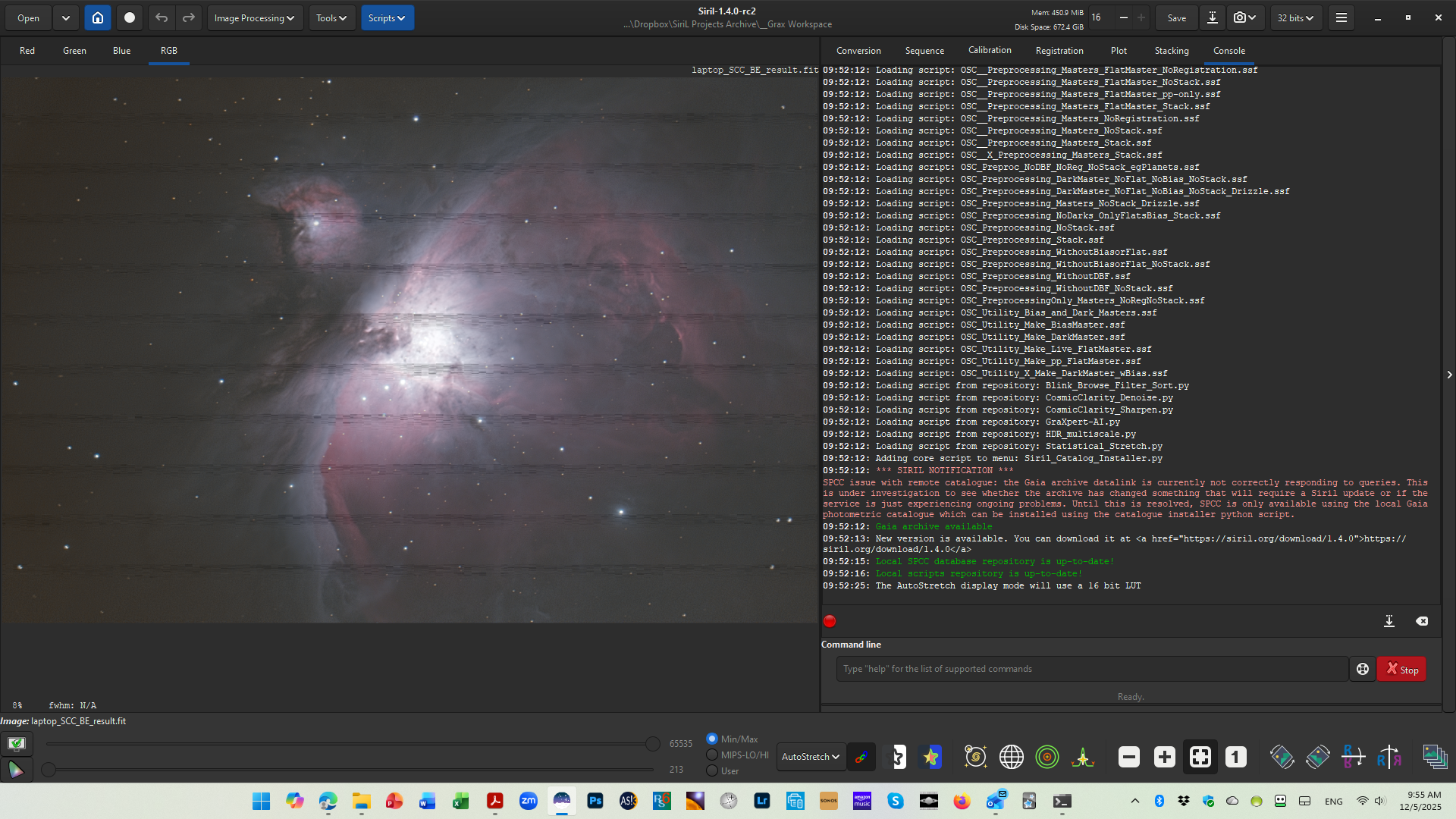 I typically run anything needing GPU on the laptop even though I do most processing on the desktop. GraXpert runs fine on the laptop; started using CC and lo and behold this off artifact. All versions of Siril (1.4.0-rc2; just noticed update available this morning) and CC are same on both machines.