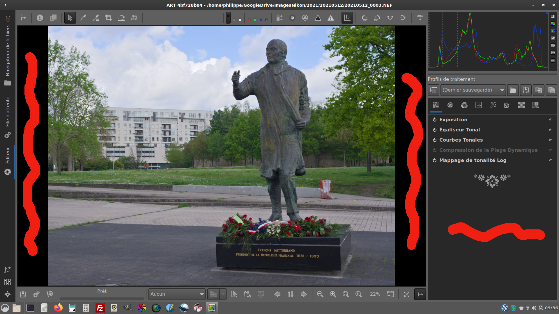 Petit truc encore. Les couleurs qu’on a choisi pour l’arrière plan etc. sont enregistrées dans le fichier options, qu’on trouve dans .config/ART. Ici on peut peaufiner les valeurs avec l’aide d’un selecteur de couleurs.
