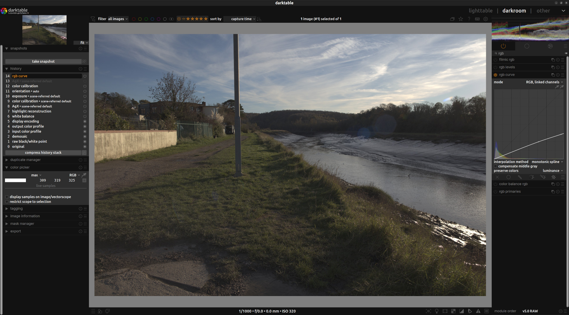 Let’s just think about general tone curve manipulation and graphs for a moment, starting with y=x. If you add a point south or east or anywhere south-east of the y=x line then all pixels become darker (except for those with “x=1”). Yes the contrast may increase but that’s because the darks get much darker, not because the lights get lighter (they get darker, but much less than the change to the darks). For the RGB Curve module, the issue is I believe the extrapolation Kofa refers to due to the highlights being “off the end”, not shown in the module. The highlights are being changed dependent on what’s happened below them.