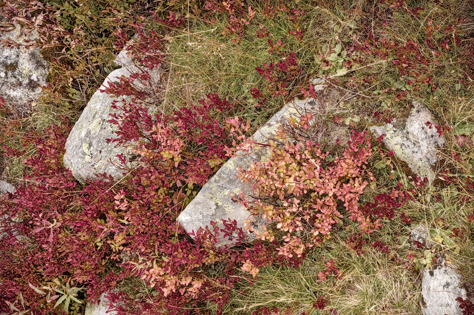 I’ve learned a lot looking at various play raw images here and wanted to contribute too. I have this image of blueberry plants in the Alps and I think it’s a challenging edit: on one hand, the colours of the red and yellow leaves of the blueberry plants as I remember them were extremely strong, so I want to reflect that in the image. On the other hand, it’s tough to make the strong reds stand out without either losing the detail in the leaves, or desaturating the surrounding grass into an unnatural-looking grey.