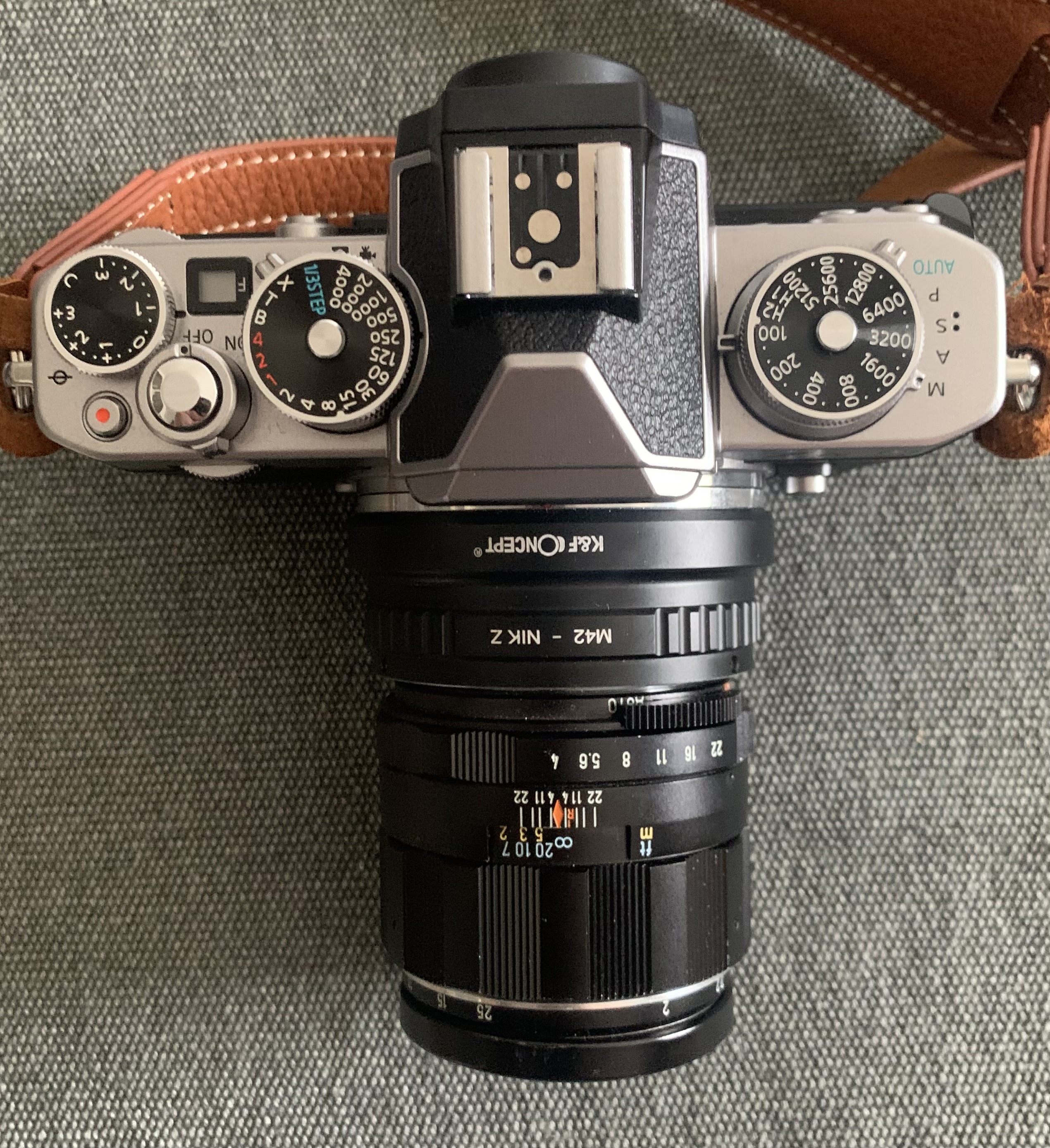 Between the camera and the lens is an adapter from Z- to M42-Mount.