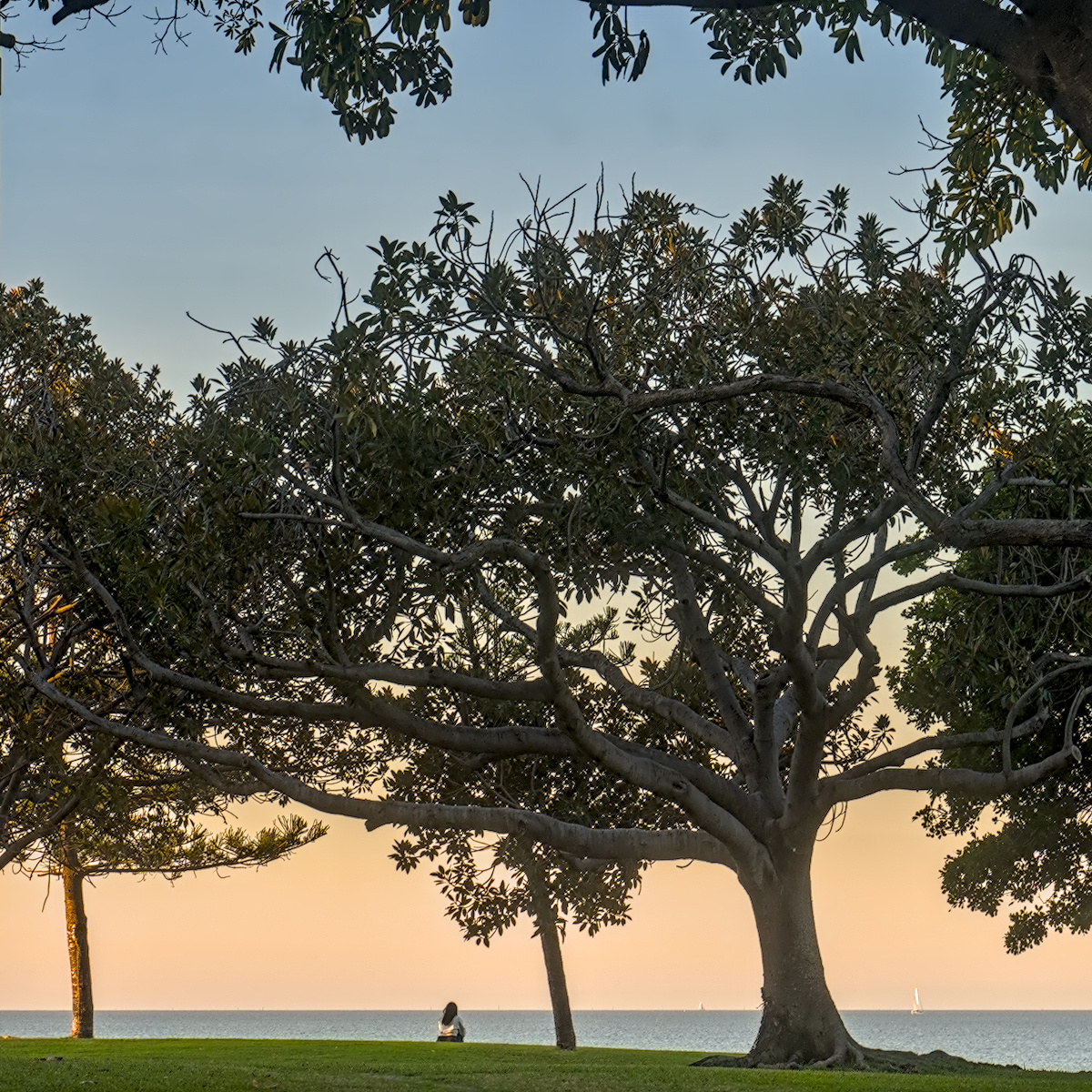 The same edit but two different crops, which makes imho opinion two very different pictures. I would go for the first one, because it is the photo you take - and I like to have the tree as subject and not the lady. Further on I think for the second version, the resolution to show it on a bigger screen is not sufficient.