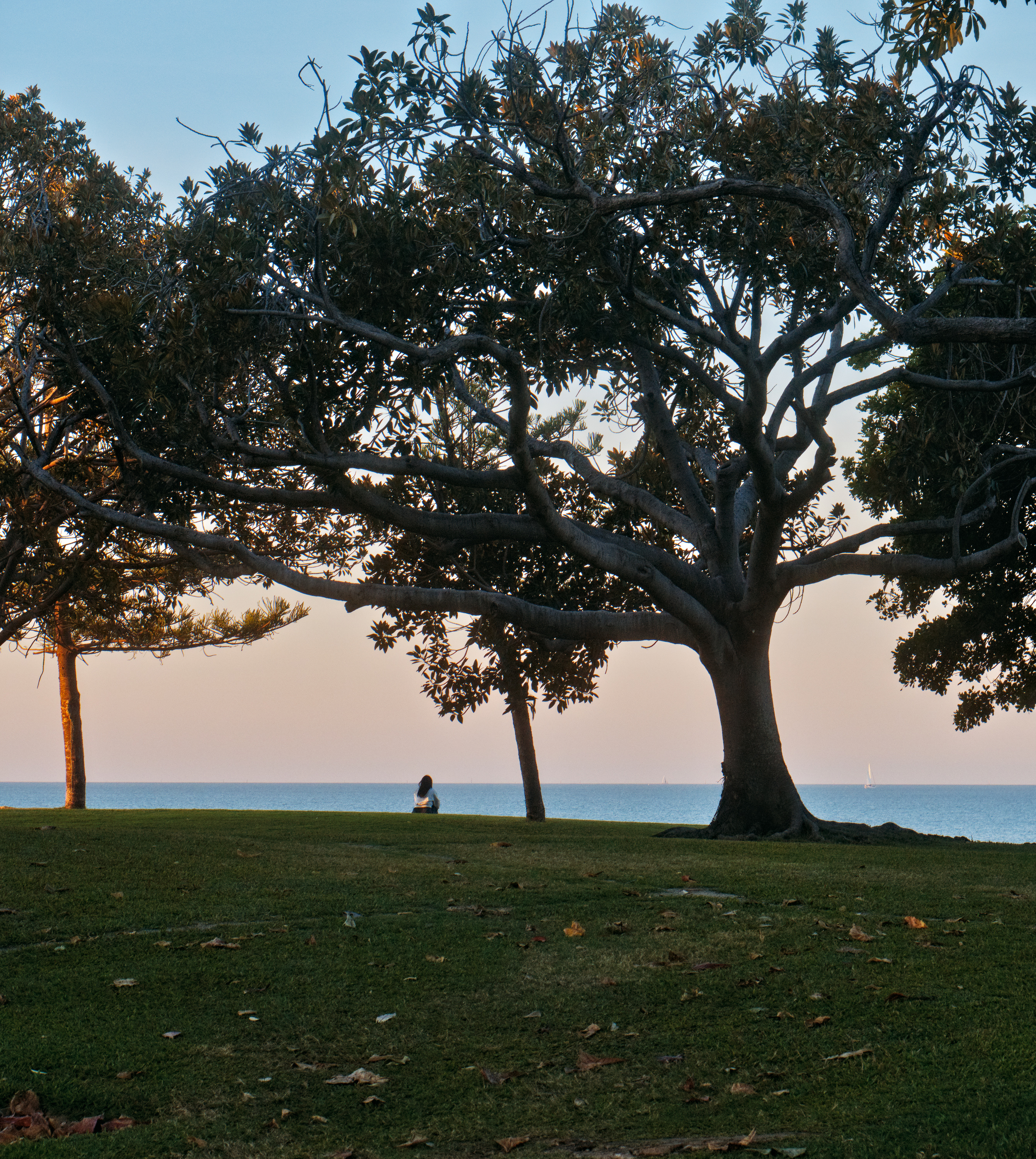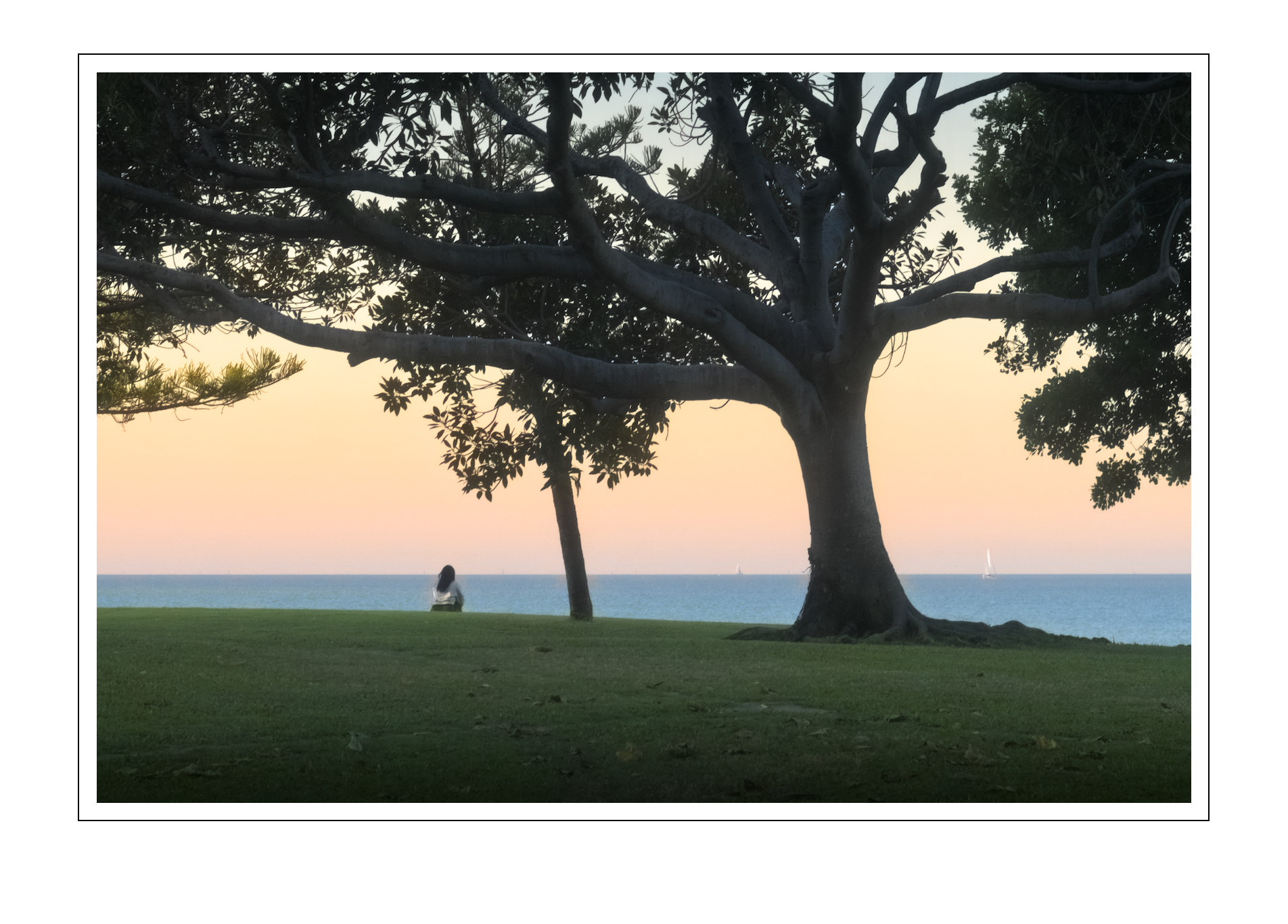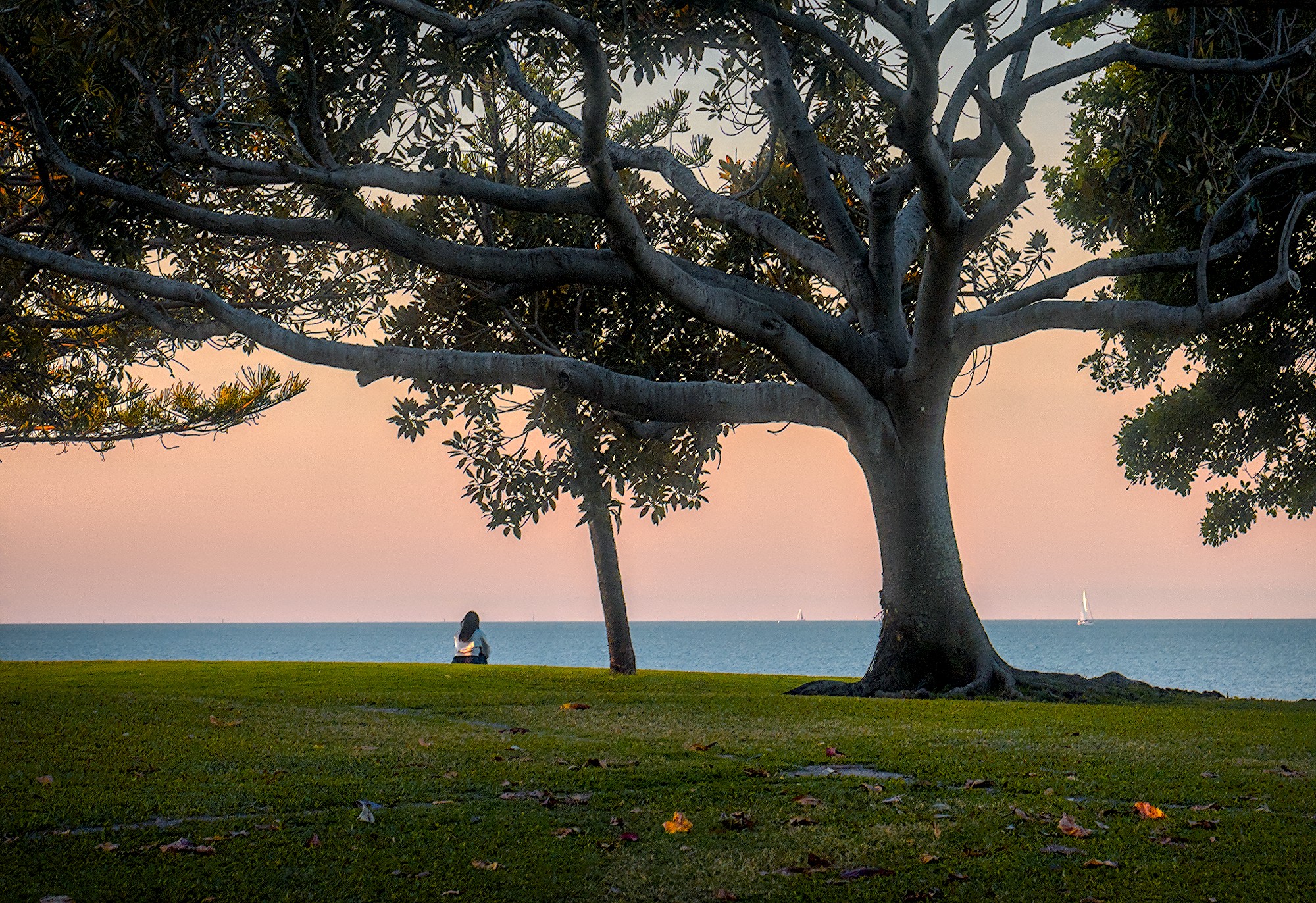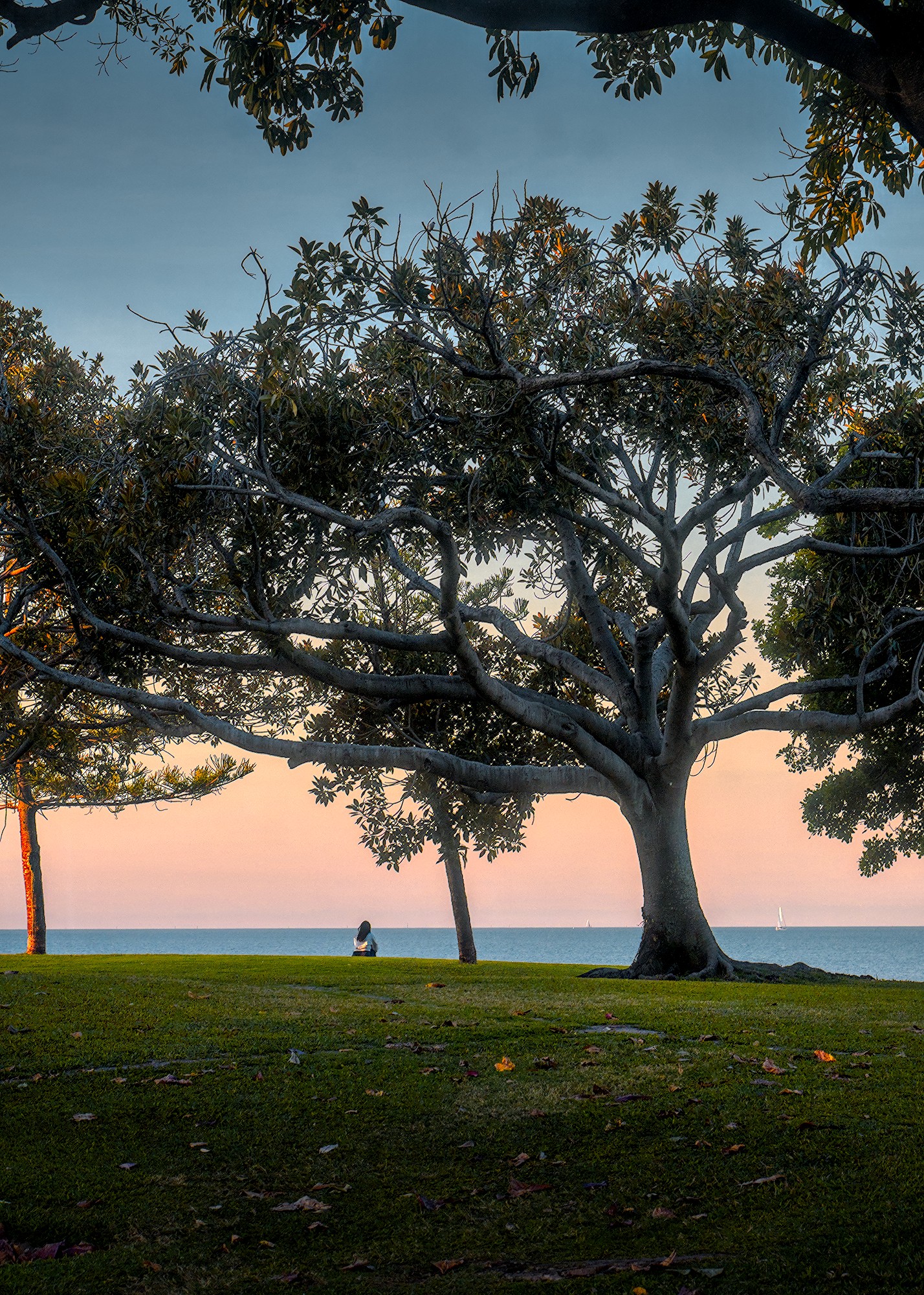 As soon as I saw the image, I couldn’t help but see a golden spiral composition. The rest of the landscape elements are “noise.” I think this composition simplifies the subject’s loneliness.