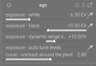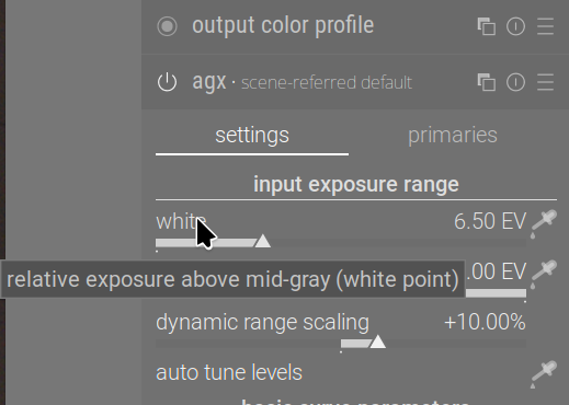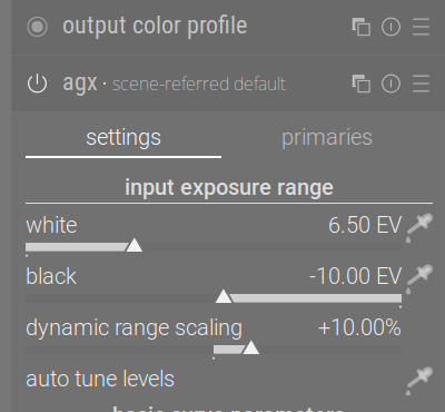 black point, white point, dynamic range scaling / DR scaling, auto tune levels (unchanged) or ‘auto’