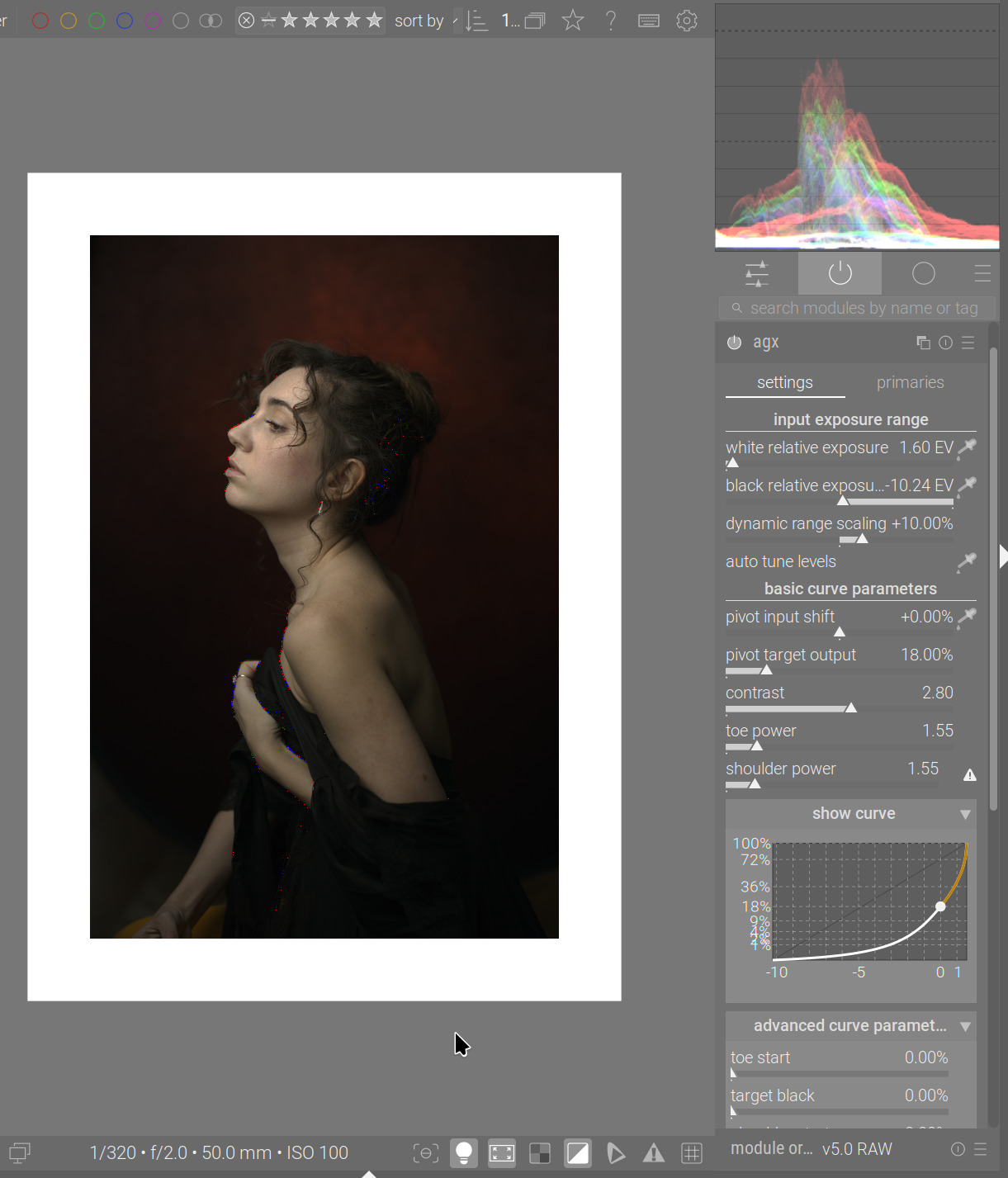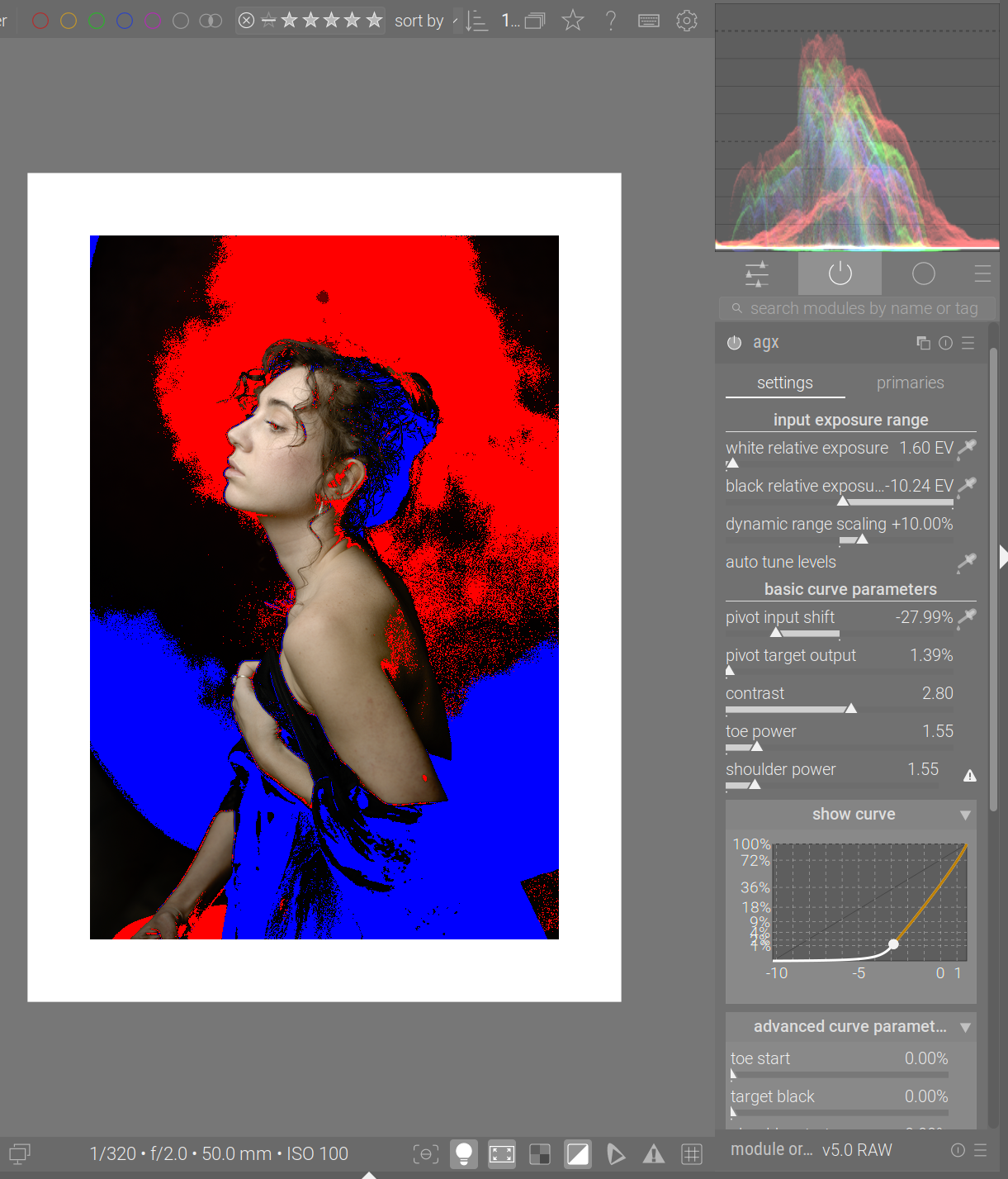 - a restructuring of the logical (not the on-screen) arrangement (grouping) of controls. We used to have almost all controls in ‘sections’, but the QAP displays the names of controls prefixed with the name of the section. Certain section names were rather long, and combined with the name of the control, would not properly fit on the screen. Therefore, the logical sections “basic curve parameters” and “advanced curve parameters” have been combined into one, with a shorter name: “curve”. The exposure and primaries controls have been moved directly under the root of the module (not placed in sections) so they would fit on the screen. Your existing agx-related QAP and keyboard shortcut settings will be invalid with this code.