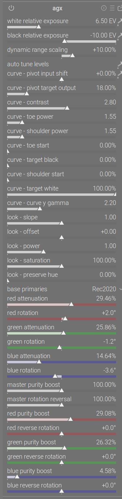 I’m used to filmicRGB and now I’m trying Agx, which appears to me like a super sigmoid ( far more controls ).