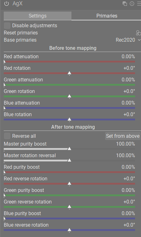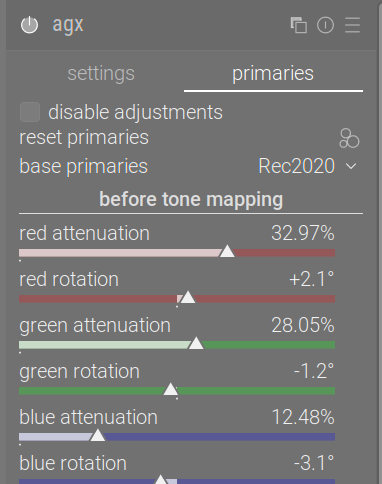 Not sure if this has already been mentioned, but would it make sense to use the same slider graphics as RGB Primaries for the rotation sliders in the AgX Primaries tab?