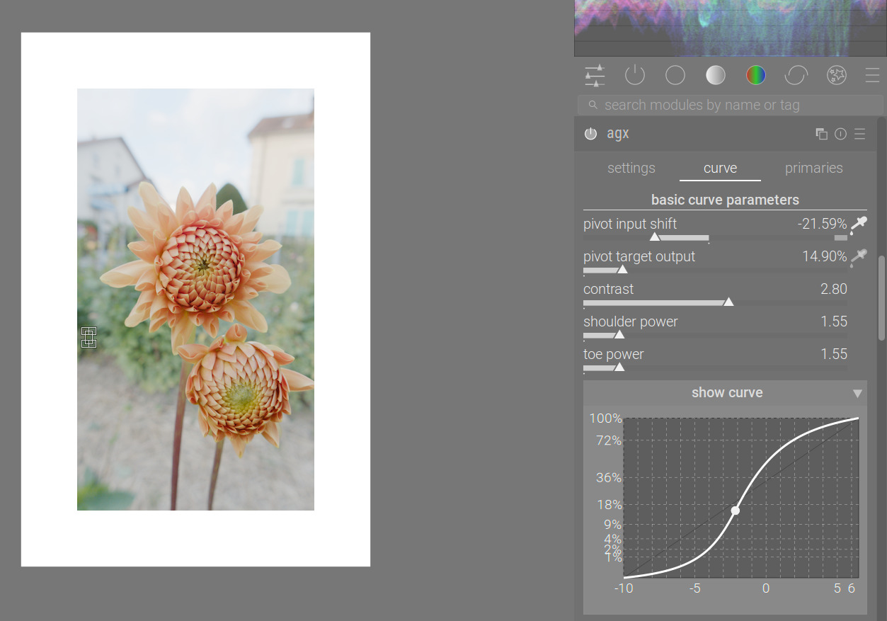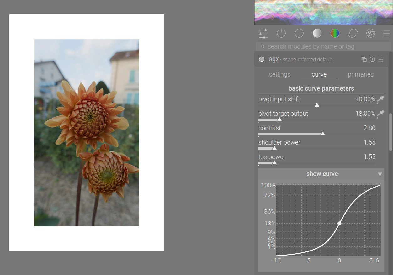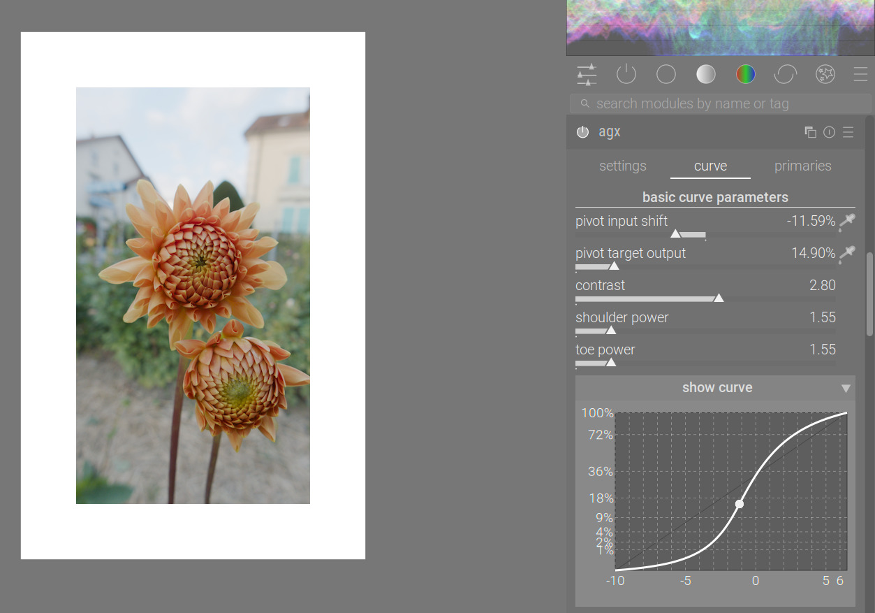 I’ve been playing with the source code of the AgX module, mainly to learn about the 18%->18% mapping we discussed earlier. I can see what @kofa meant, it is indeed difficult to make the plugin memorize the current brightness level. Or rather, it looks deceptively easy but the straightforward solutions don’t work. For example, just using the current brightness value: