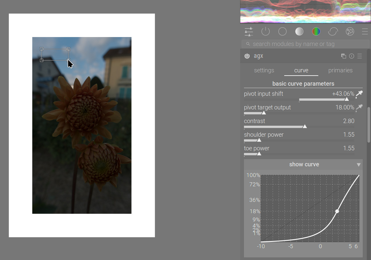 Thanks, I’ll look into it. The intension of the picker is actually to re-calculate pivot y based on the default mid-grey to mid-grey mapping (I have tried using the ‘current’ one, but that changes all the time as you drag the rectangle, and that quickly drives the image into unpredictable states).