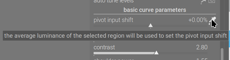 The UI is inconsistent. The pivot input shift slider only shifts the pivot input. The color picker next to it shifts the pivot input but also resets the exposure to the mid-grey level. I actually don’t mind both of them maintaining the exposure, as long as it is the last user-set exposure, not just the mid-grey level.