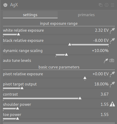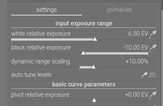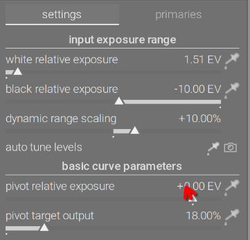 “[…] When adjusting the black/white relative exposure values, the pivot relative exposure (its distance to mid-gray) will be maintained, as long as possible. This will cause it to move along the x-axis, […]”
