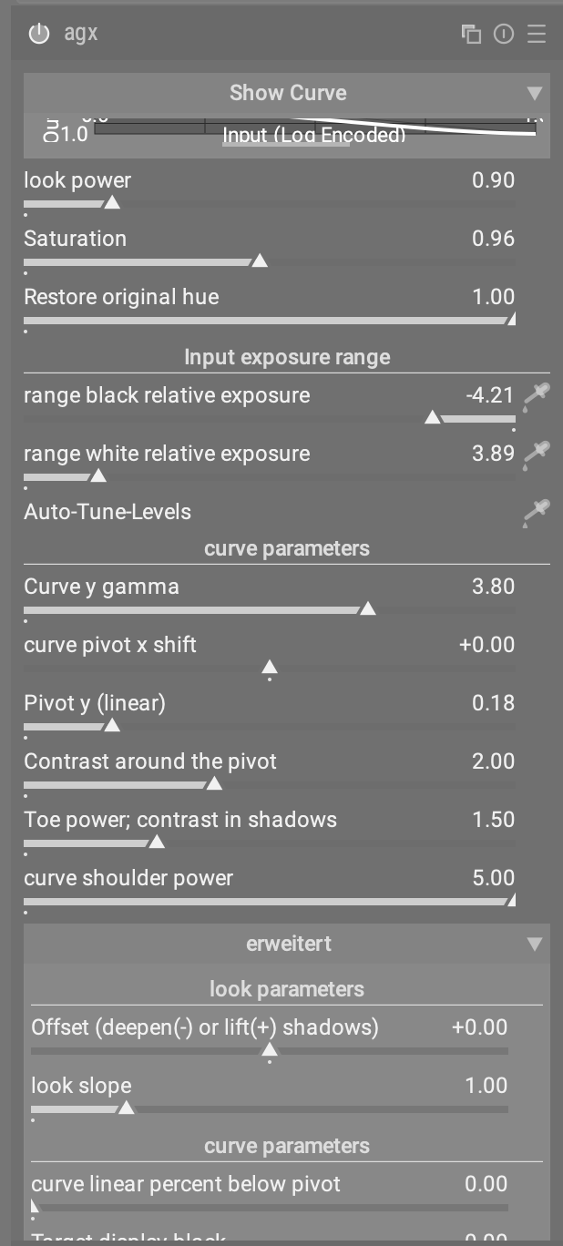 And the behavior of the sliders in the tone mapping section also depends very much on the settings in the look section. Furthermore, this hierarchy also corresponds to the internal processing logic of Agx.