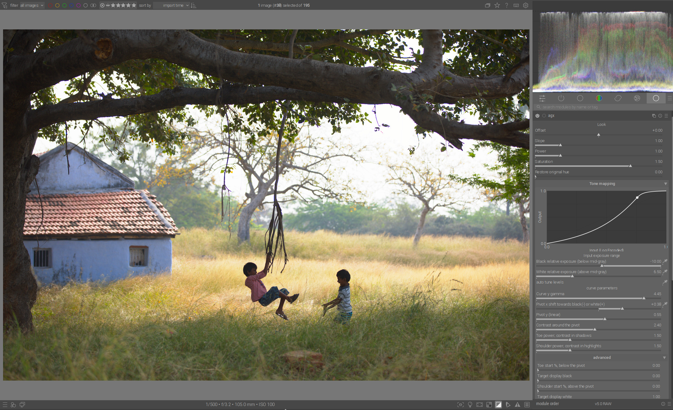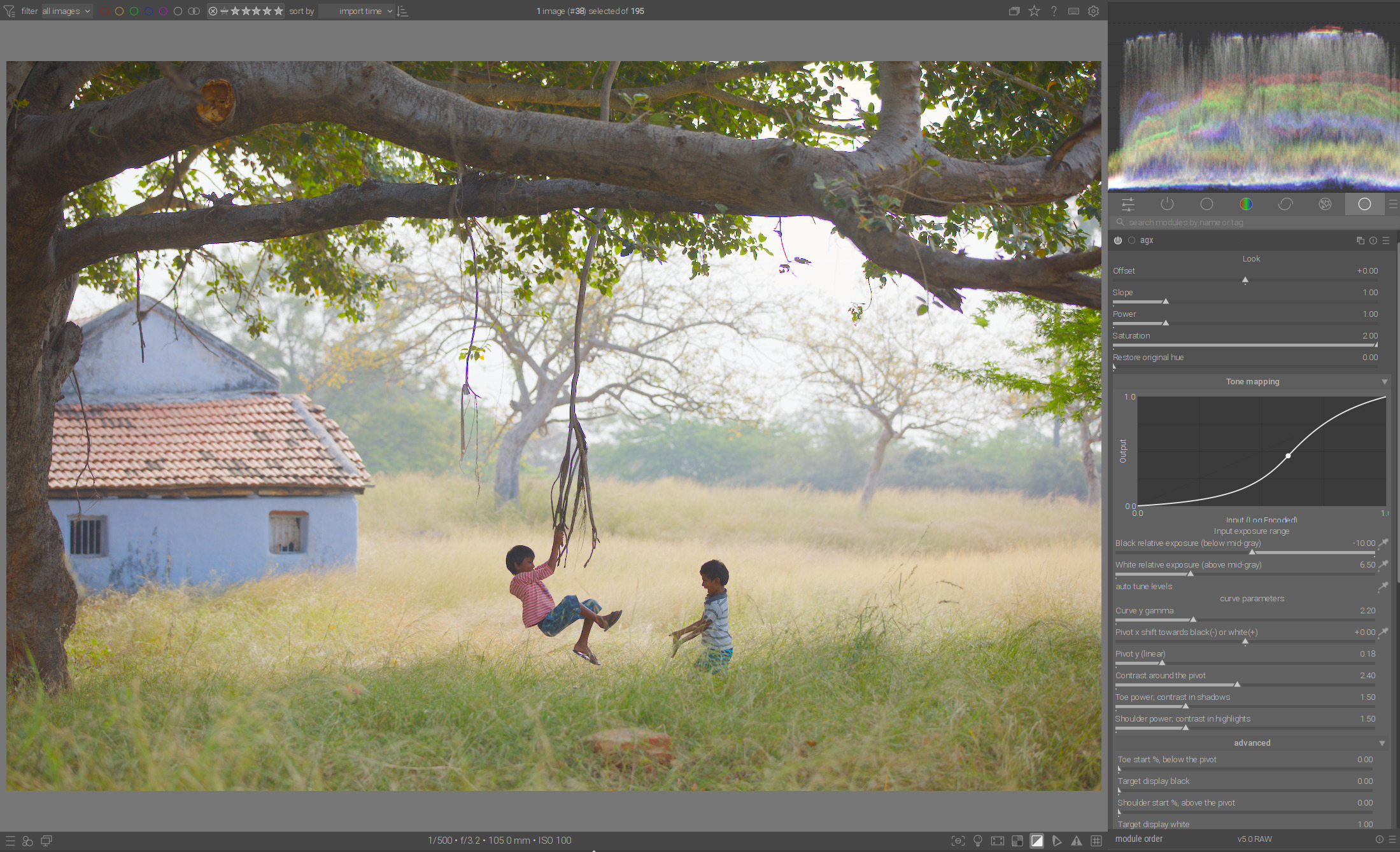 In this case, however, we can darken the highlights a little with TE to bring back the details on the road and to achieve even stronger contrasts in highlights with the shoulder power in Agx: