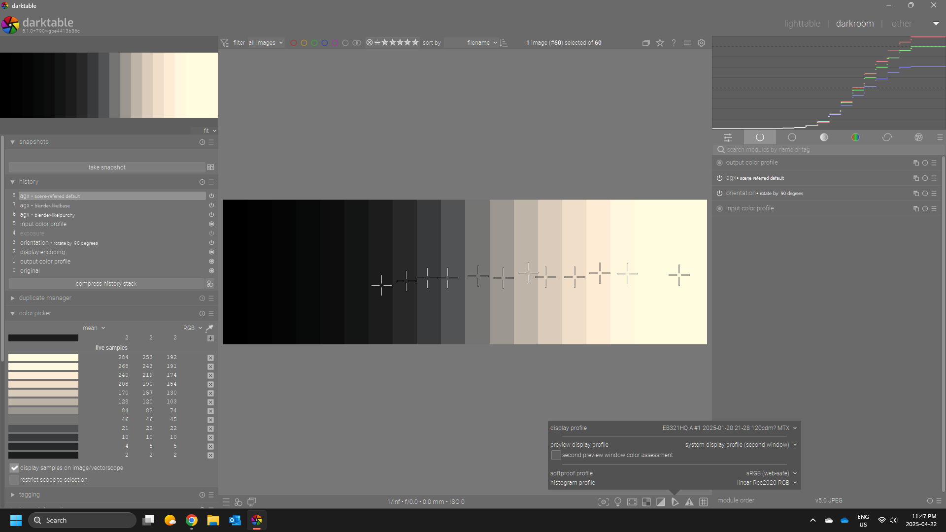 I think people should also check their display profiles when testing your gamut and primaries and I think given the DT pipeline and that issue with the display profiles that can happen its worth changing your display profile to linear rec2020 to check the gamut… I know my display profile from display cal can and does show a little impact…