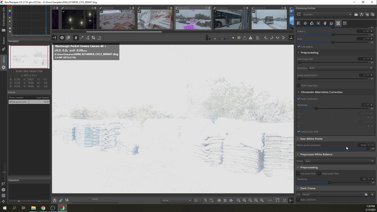 Hello, I just recently got a Blackmagic Pocket Cinema Camera 4k (BMPCC 4k) that shoots DNG raw, and noticed that the offsets sometimes weren’t quite right, and that blown highlights become filled with dark and saturated purple and cyan pixels mess on lossy compressed BMPCC 4k DNG files. I have test shots, of all resolution and compression combinations, and normal exposed and pure white full clipped variants, for a total of 24 shots (4 compression modes * 3 resolutions * 2 exposures(normal and full blown white). I was wondering what was necessary to upload to the sample raw photo database. Is all permutations necessary, or just one set for resolution, one set for compression, and another set of full white frames?