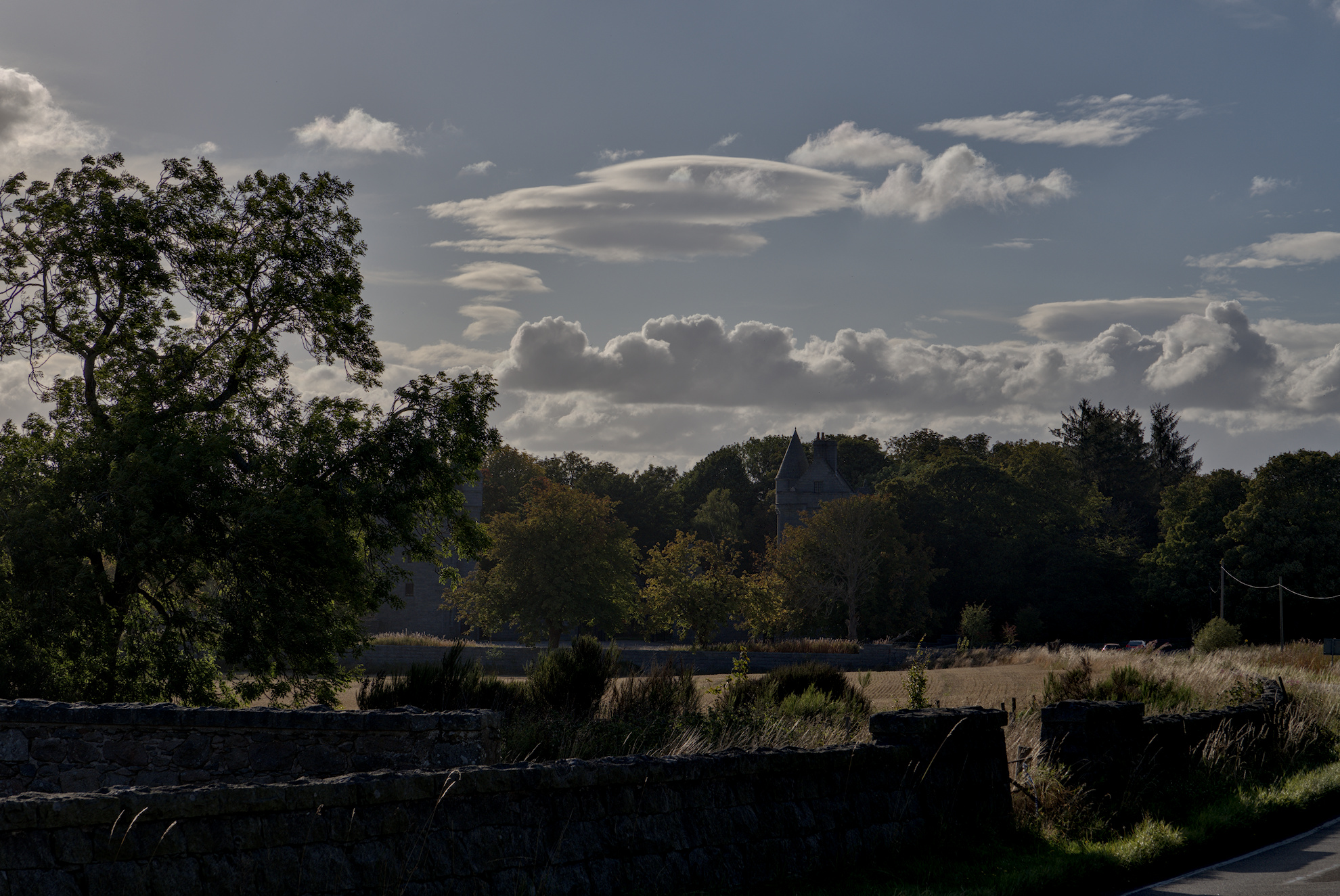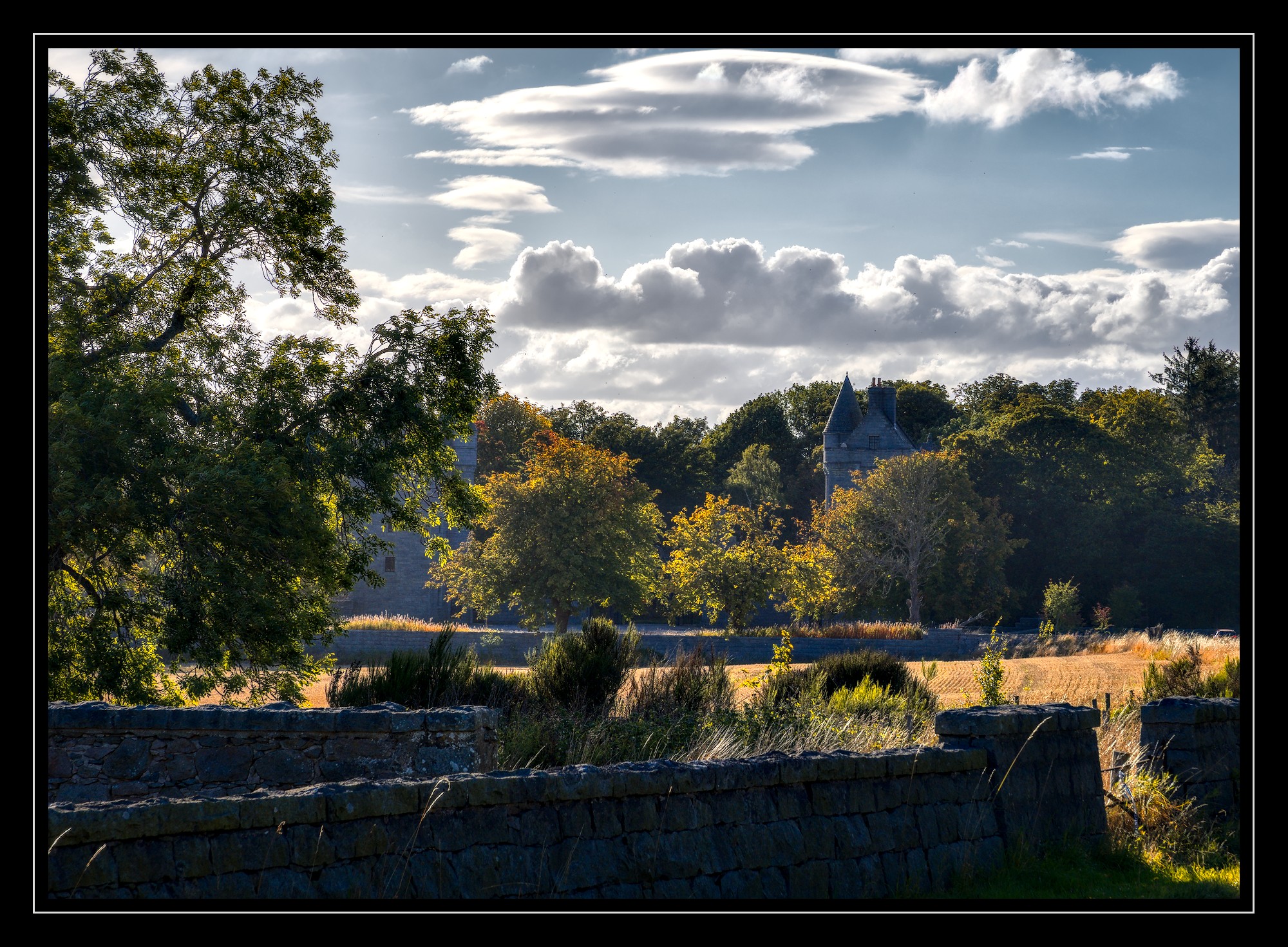 here’s a picture from my Scotland Trip from last September. I took a HDR of this scene to get the dark forest shadows and bright sky as best as possible but I fail to remove the brightness/hazy look of the buildings/trees. Not sure how to proceed best.