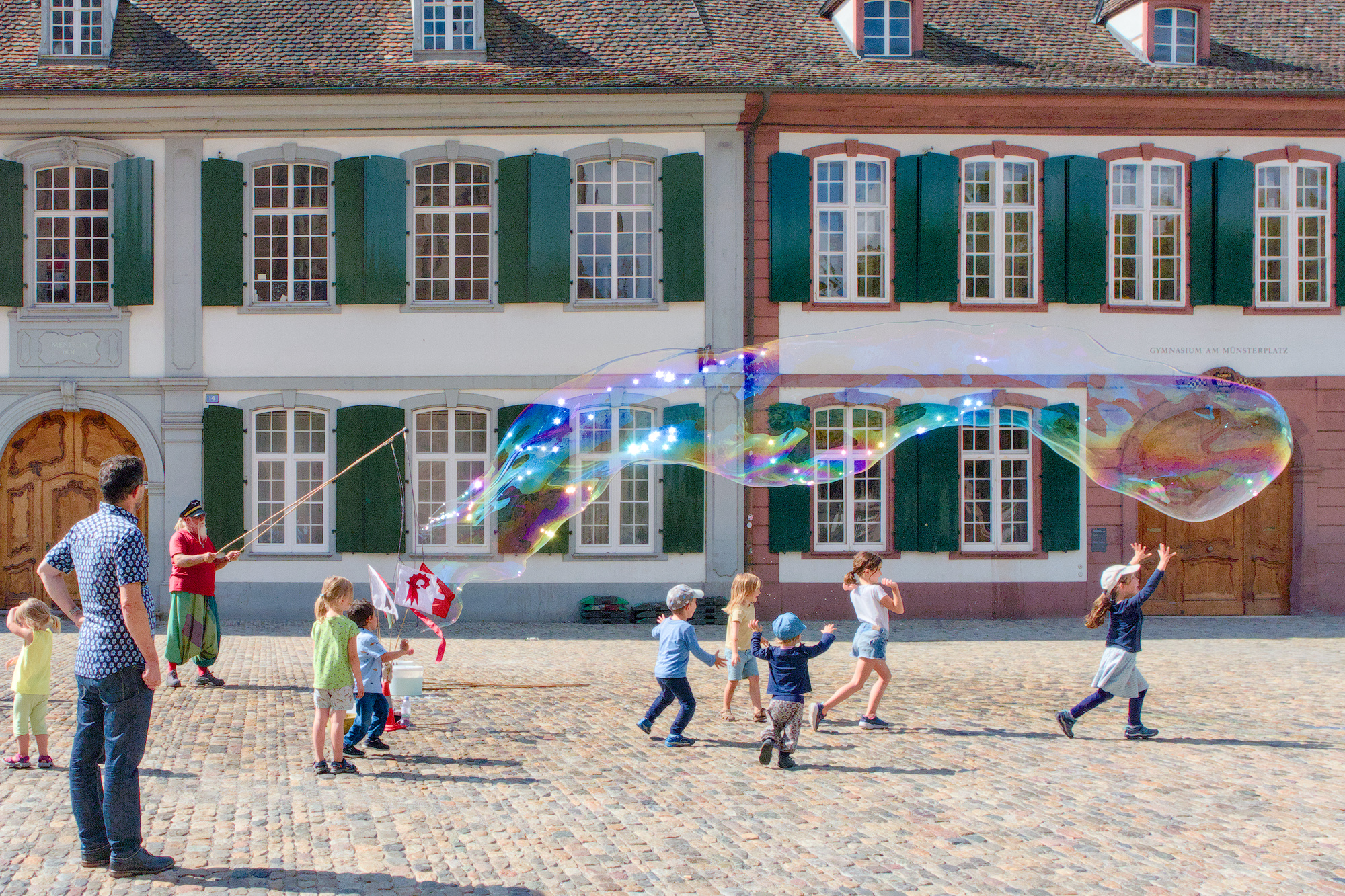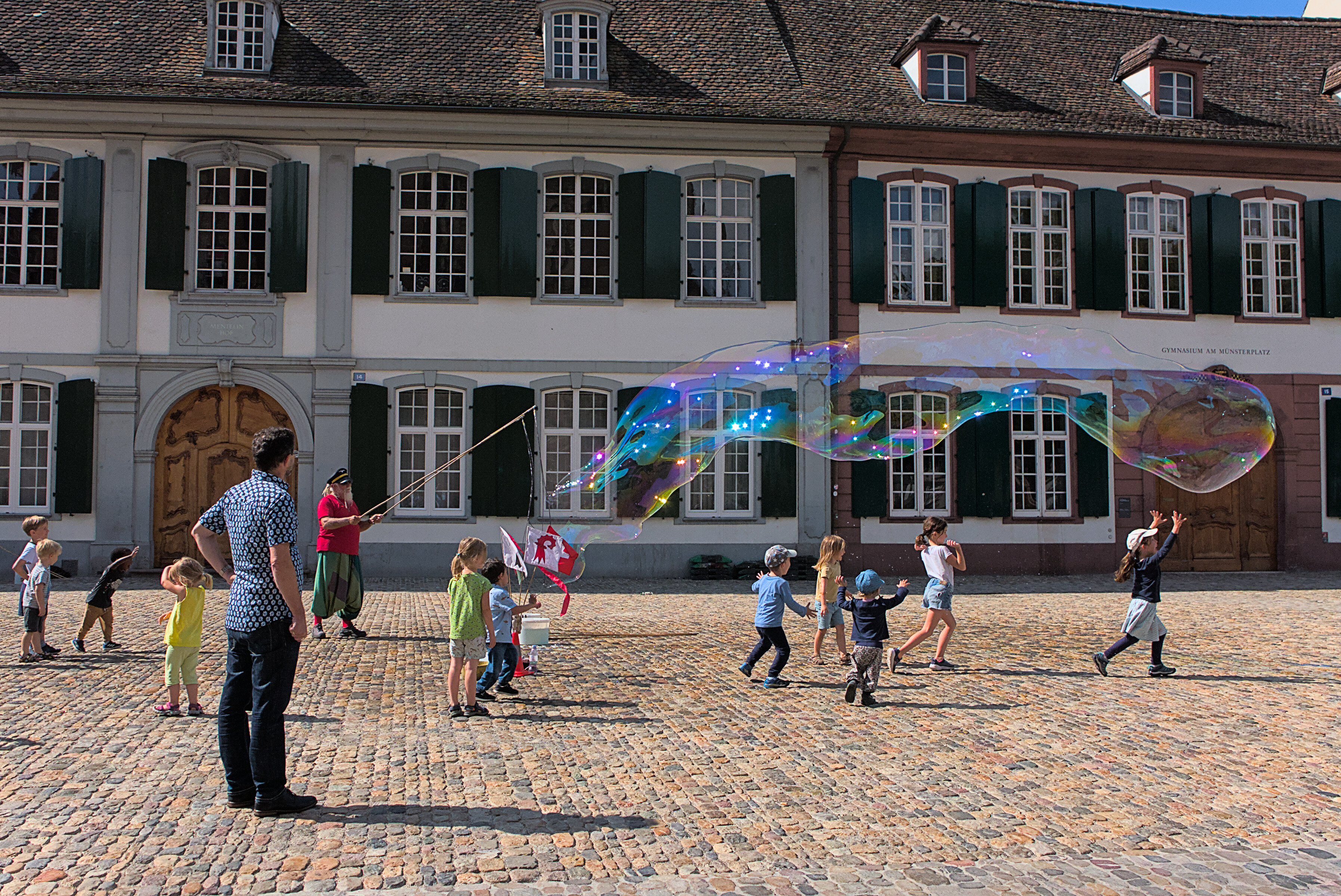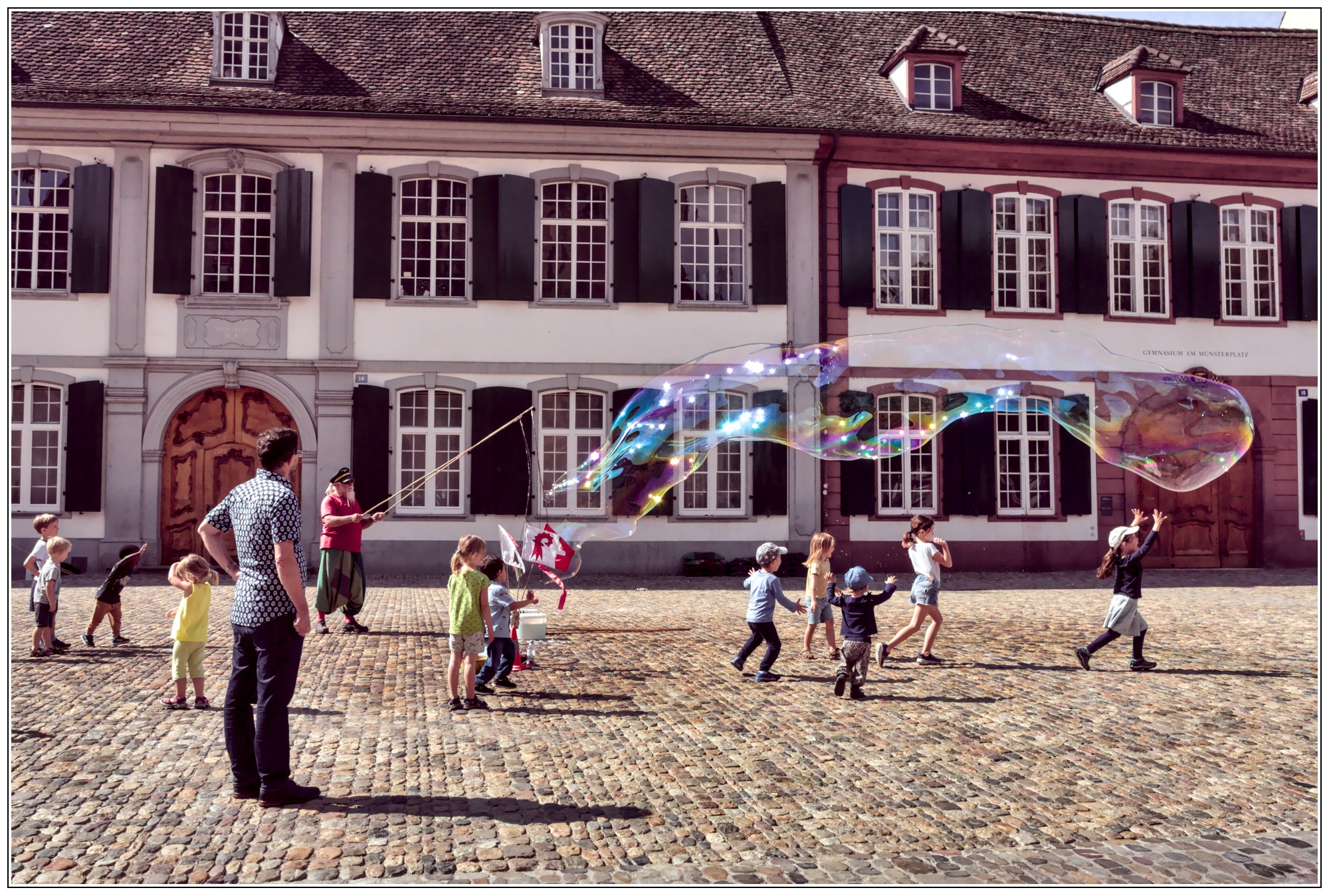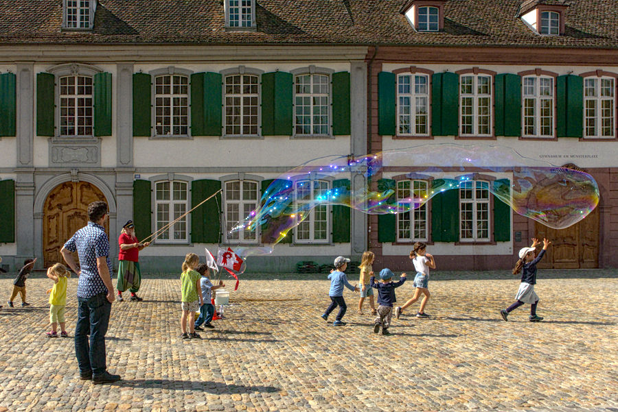 I understand you concentrating on how the light plays on the bubble. For me, the little girl on the right, reaching for the bubble, was the focal point. One image, many possibilities.
