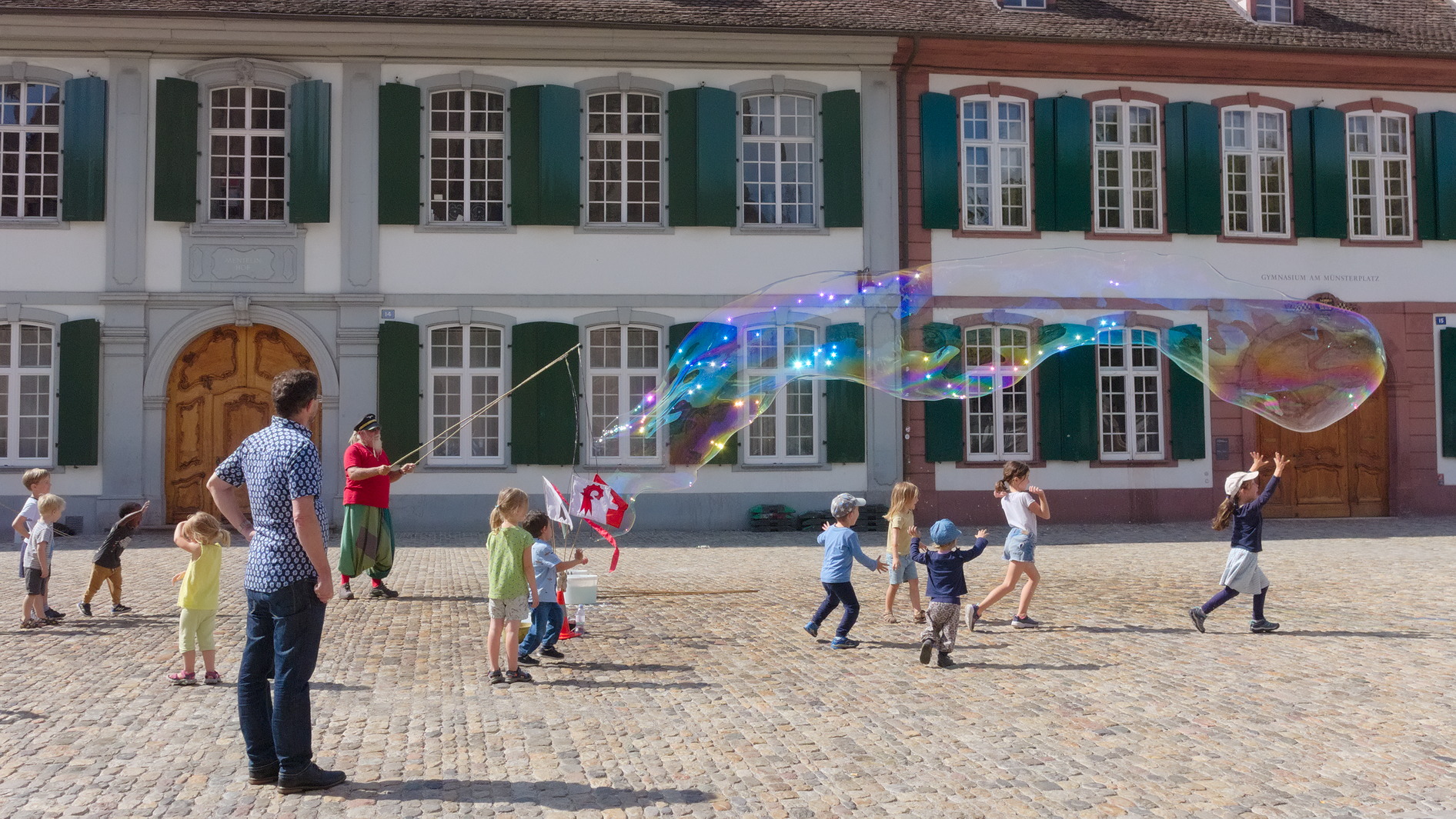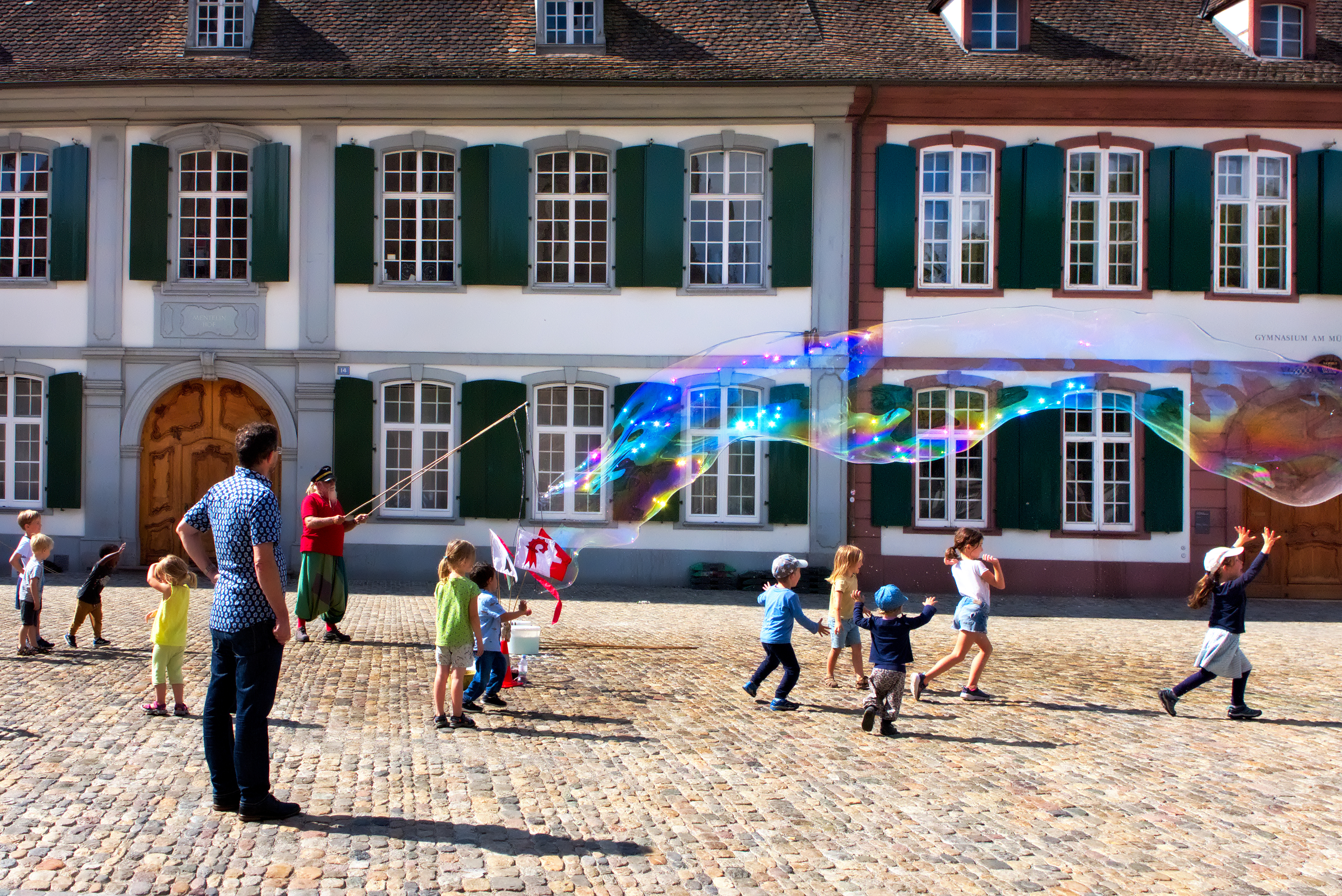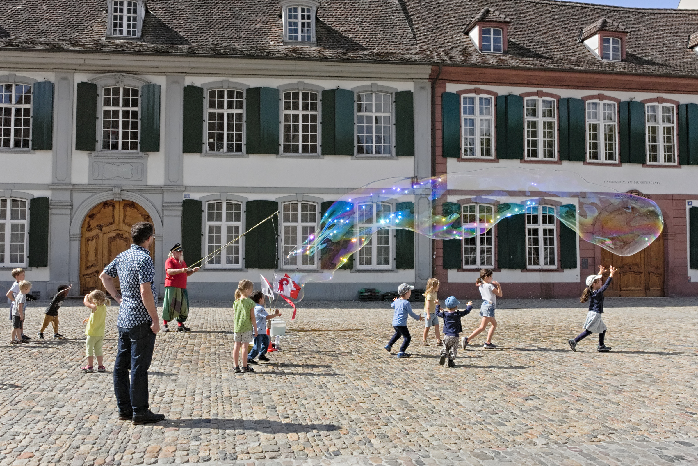 I understand you concentrating on how the light plays on the bubble. For me, the little girl on the right, reaching for the bubble, was the focal point. One image, many possibilities.