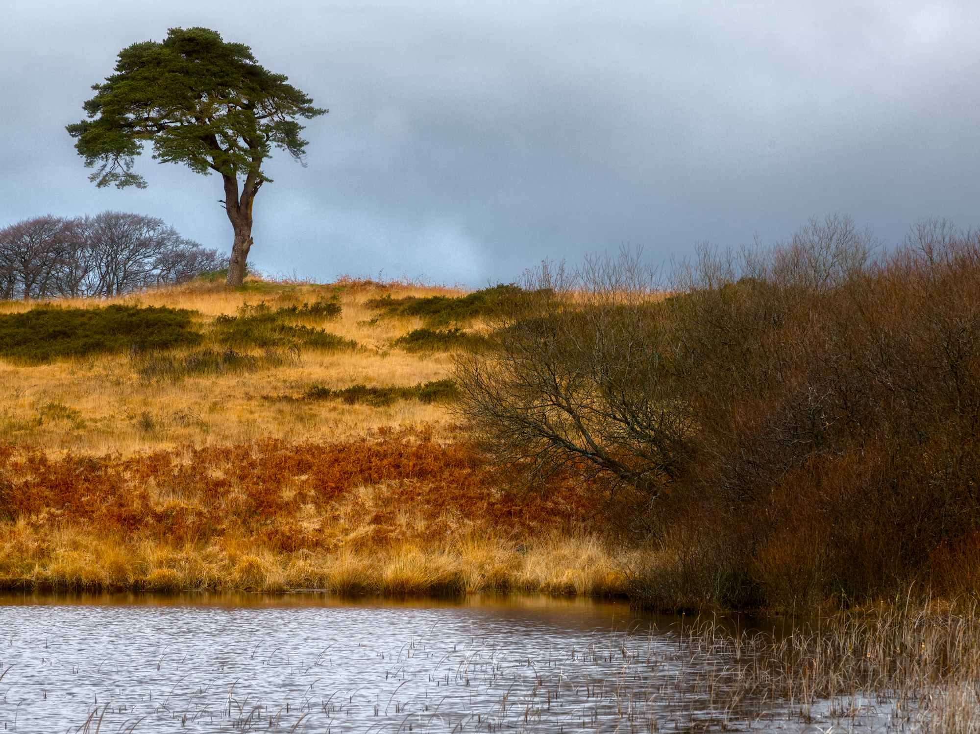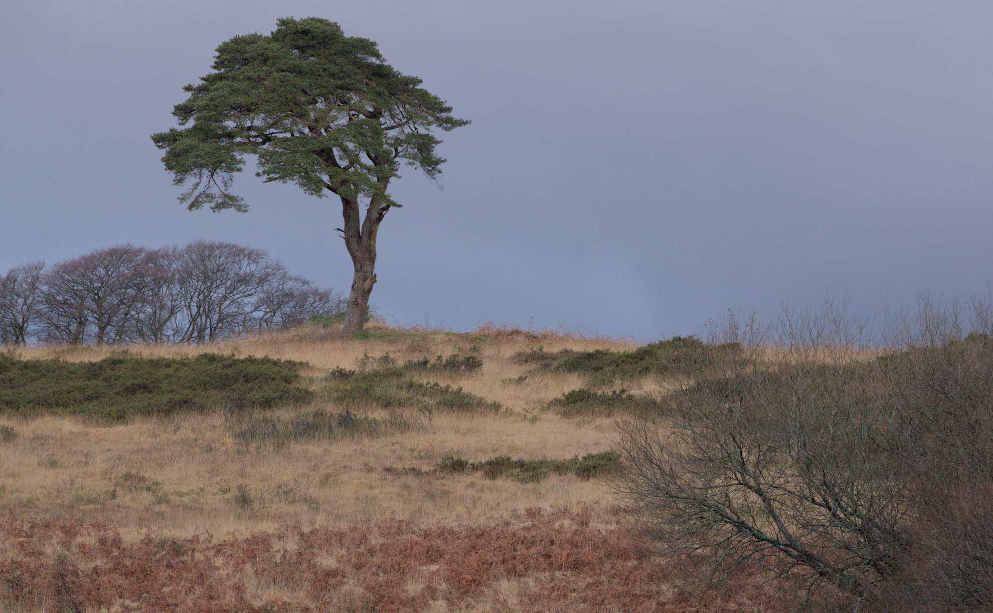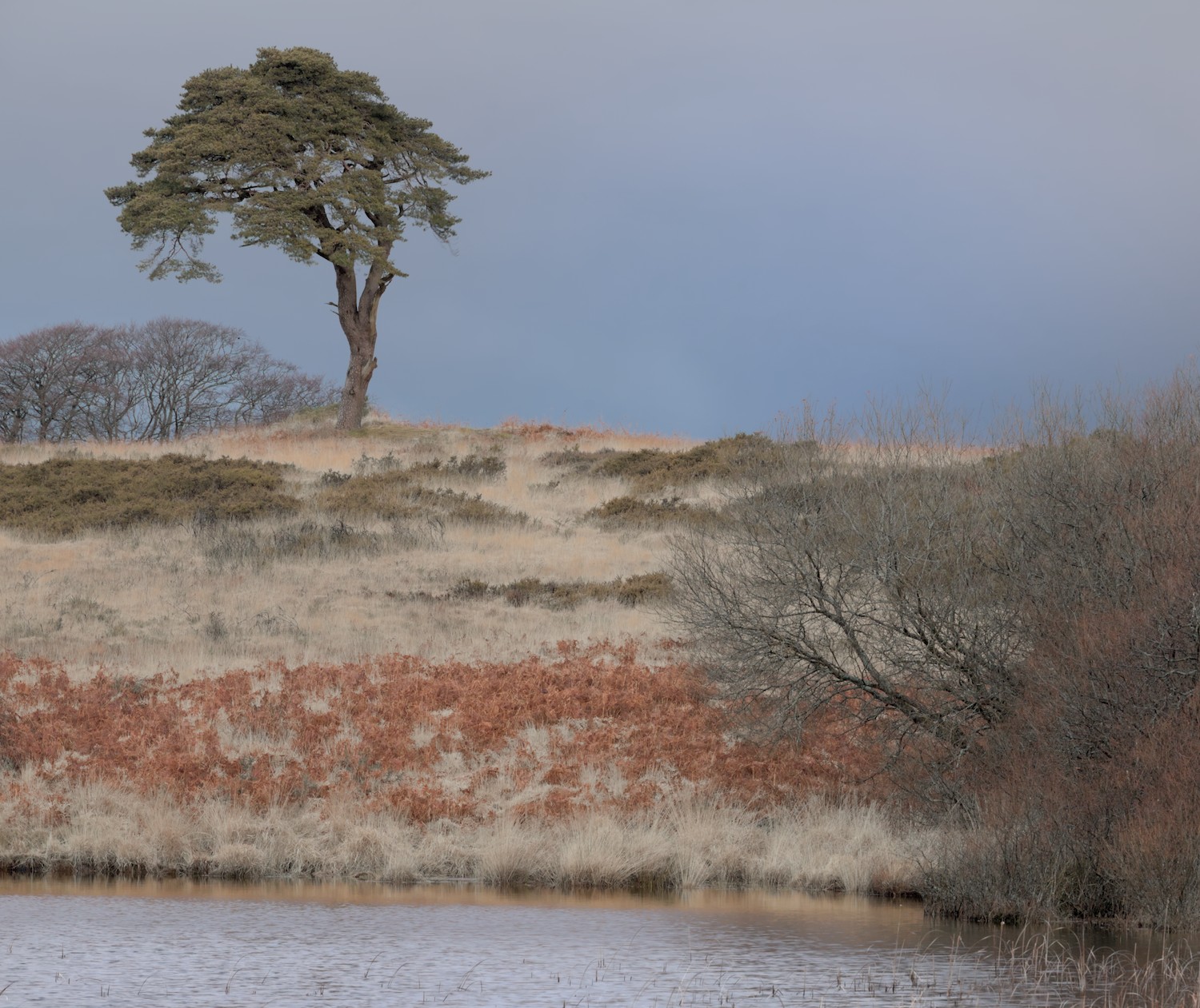 For the scene itself, I wanted for it to say more strongly “dry season”, and highlight the blotches of colorful plants on the hill toward the tree.