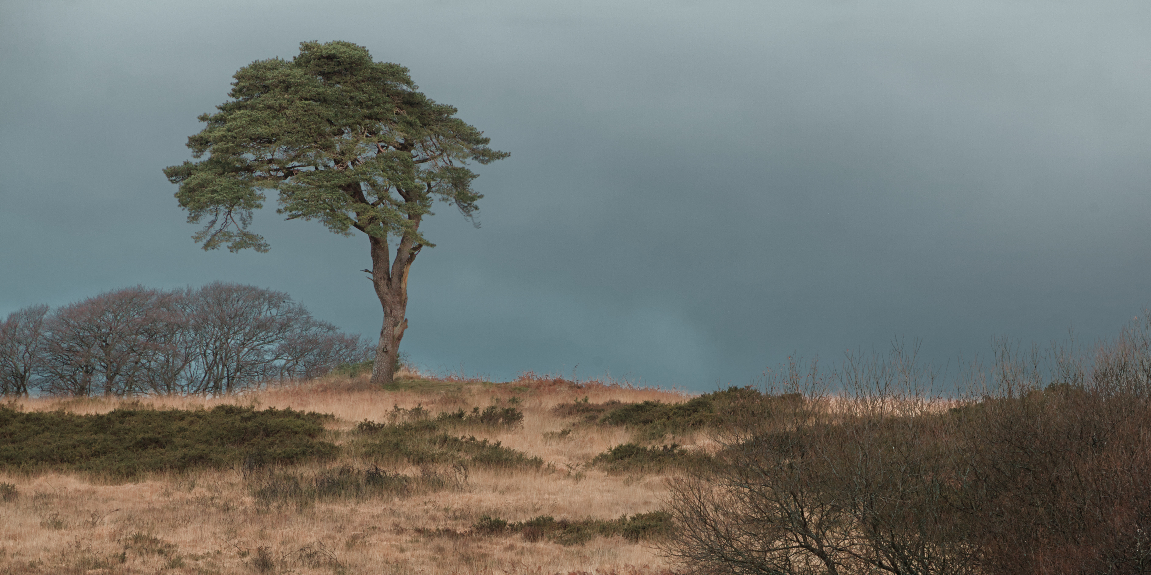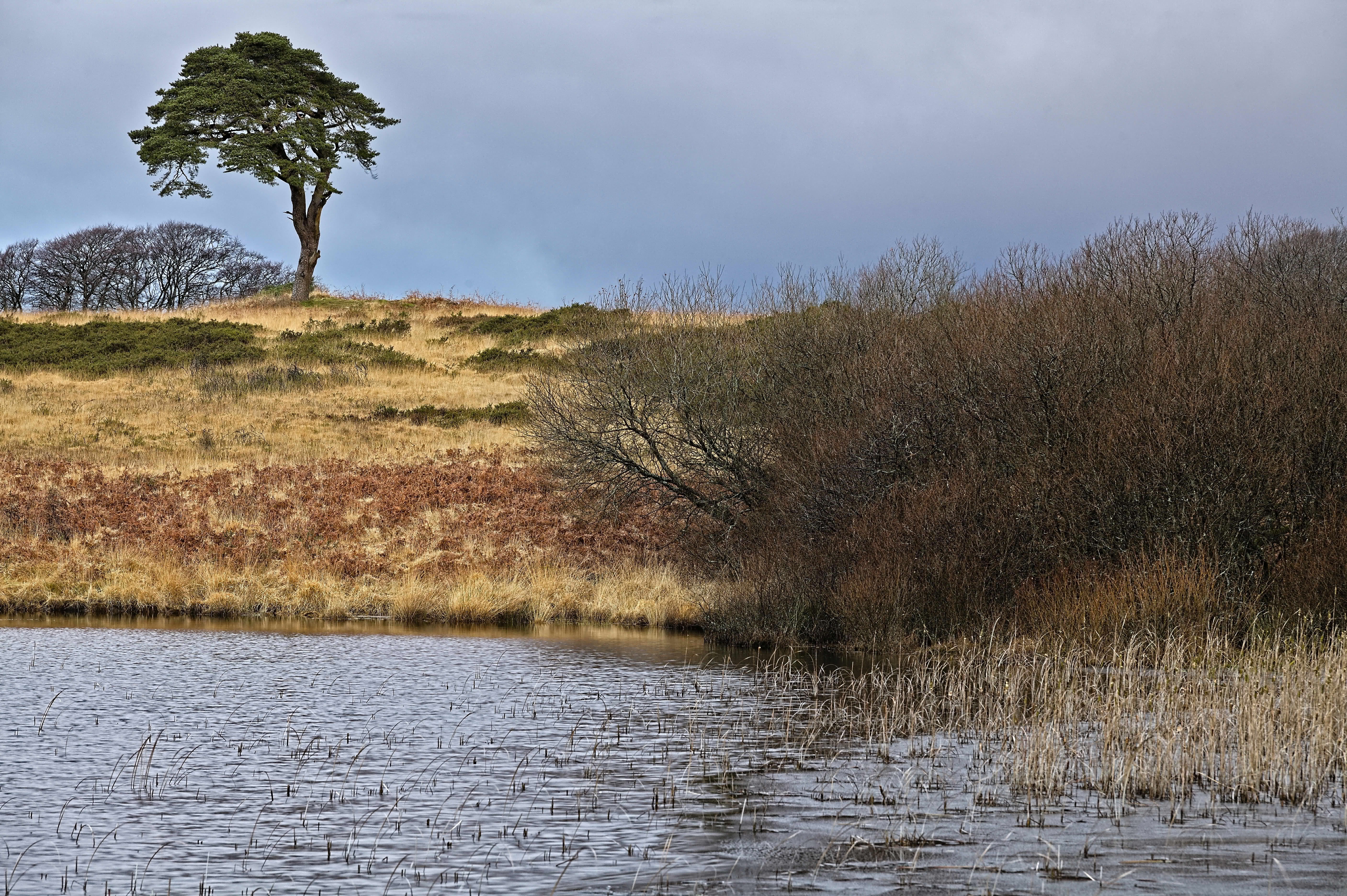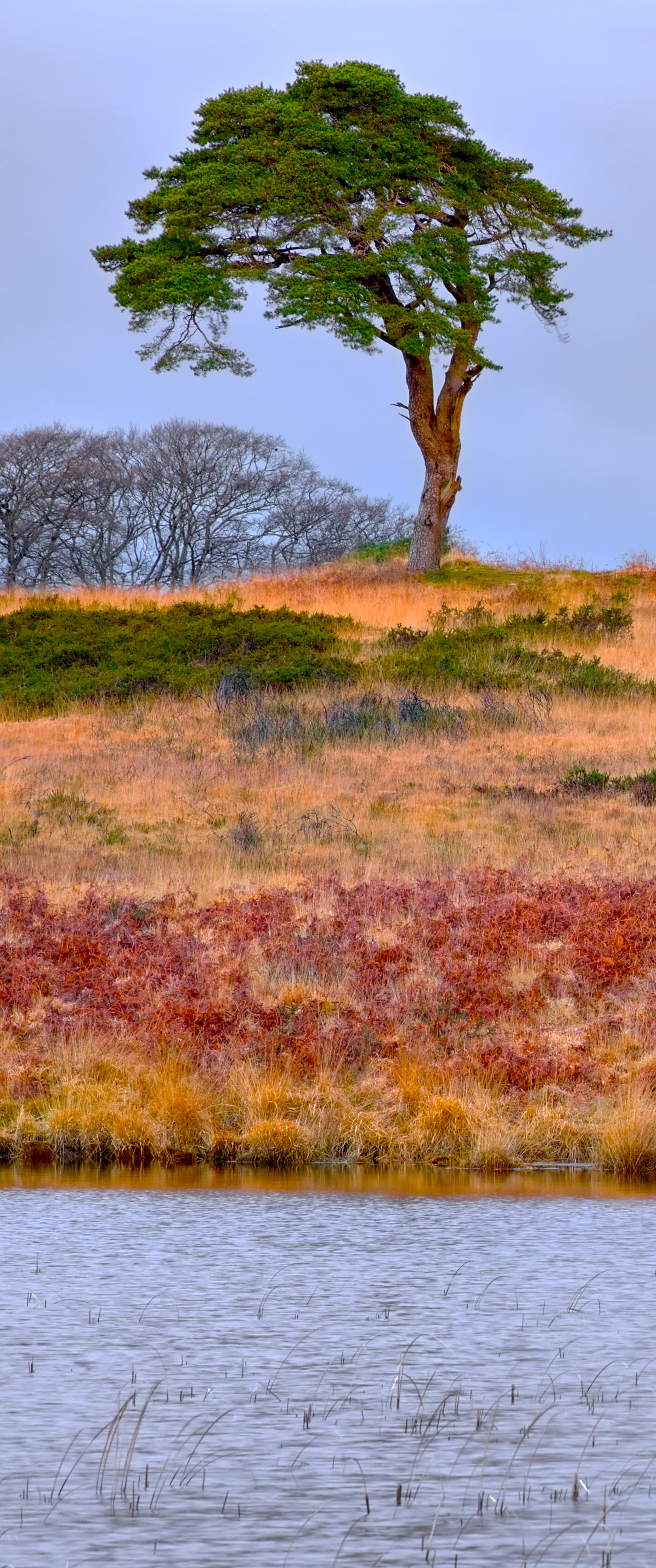 For the scene itself, I wanted for it to say more strongly “dry season”, and highlight the blotches of colorful plants on the hill toward the tree.