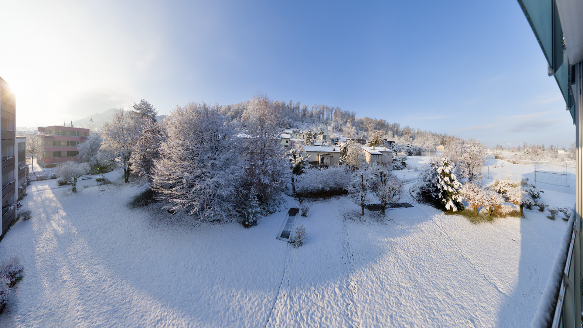 I didn’t go anywhere. The view from our balcony. Panorama stitched in Hugin. I had a version where I kept more of the sky visible, but then decided I prefer this version – looks more natural to me.