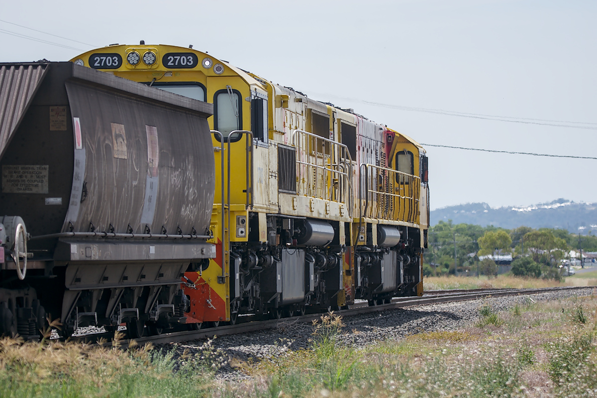 This morning, I noticed an approaching slow train just as I crossed the tracks, so pulled over to capture a few frames. Points and a passing loop immediately after the level crossing, so the speed is down to 15km/h. Two locomotives and a whole heap of coal wagons - probably around 1.3km in length; plenty of heat haze but the subject was well-isolated because I still had the 150-600mm mounted from yesterday.