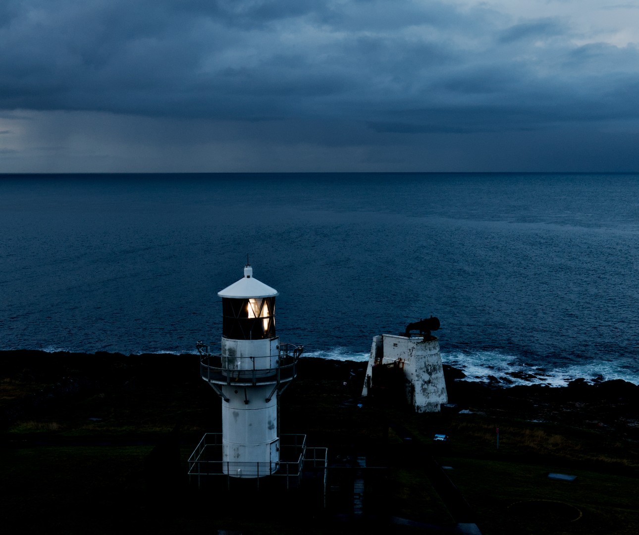 It was a little late when we got there, but we happened upon the Museum of Scottish Lighthouses. We thought it would be a place to get out of the rain for five minutes, but it was wonderful, and we stayed for the full tour, and went inside the old Kinnaird lighthouse itself, and up as far as the light itself.
