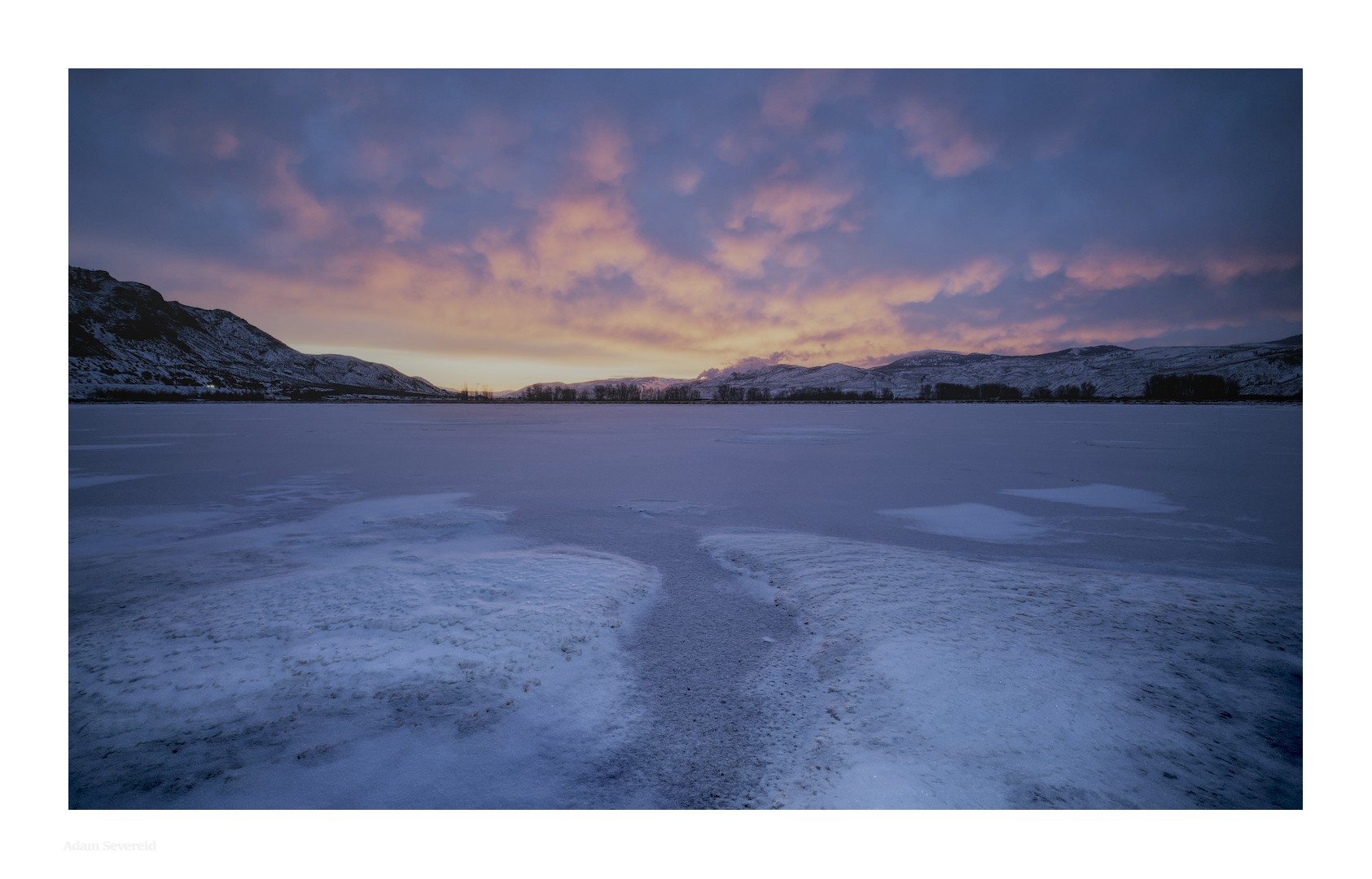 I was really hoping that the pond here would have been thawed, but given that we had a bit of a cold snap a week ago…the temperatures just haven’t risen enough to break the ice just yet. Fortunately that gave me a reason to go out on to the ice to try to find something for the foreground…and all I could find in the rapidly increasing light was these two small drifts of snow and ice.