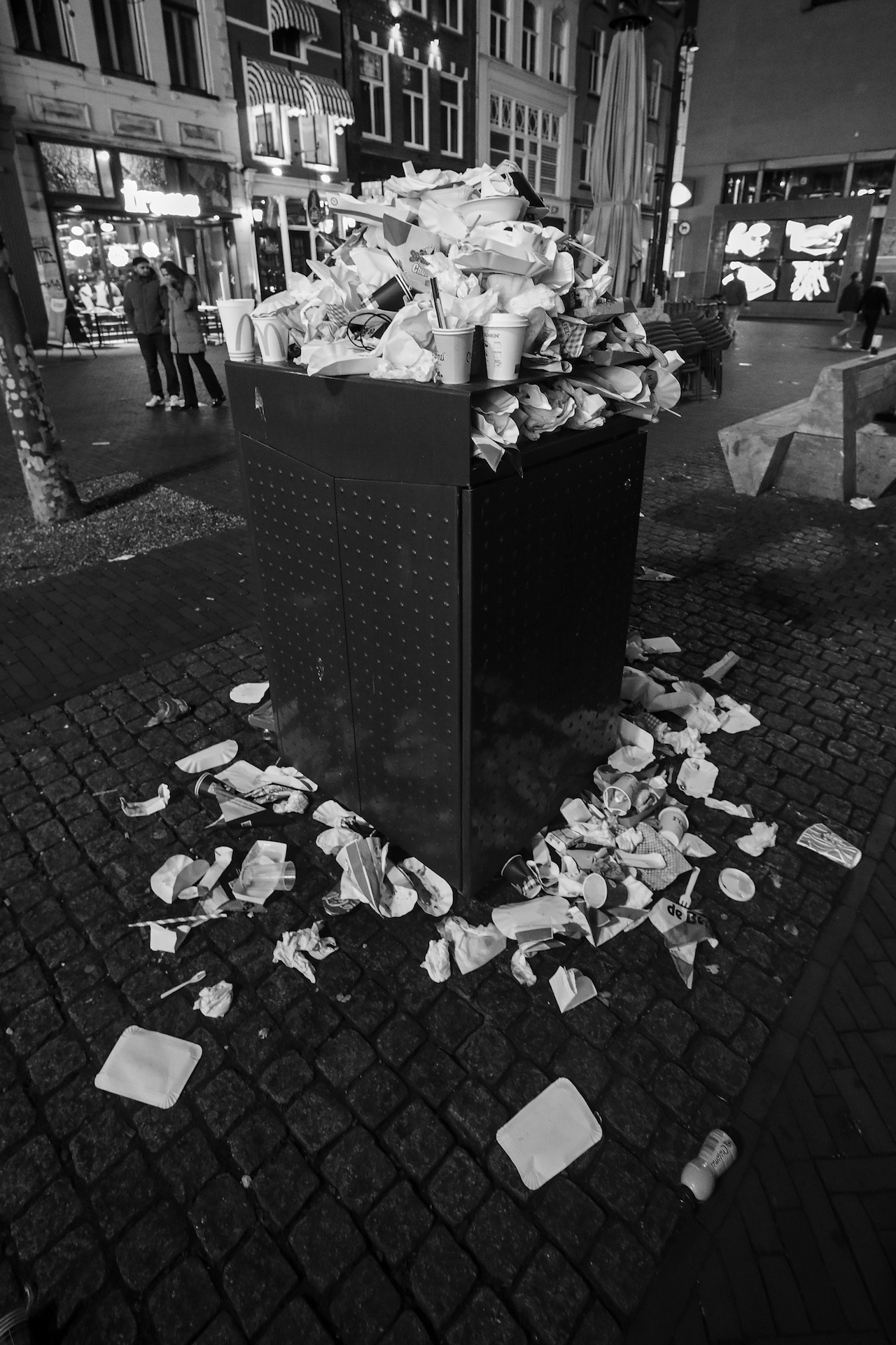 In Japan, there are hardly any bins on the street, at least as I remember, but everyone takes their rubbish home. But that’s very Japan, I guess. Sometimes people dump stuff in other people’s bicycle baskets. You’re not supposed to eat on the street, anyway. It was a nightmare finding a narrow space between buildings to squeeze yourself into to eat a sandwich if you were really hungry out and about and needed to eat something. I sometimes saw office workers facing the “wrong way” on park benches to eat their takeout at lunchtime so they were facing the bushes rather than the open space. And my Japanese girlfriend of the time got really embarrassed that I ate a chip from my plate as I walked back to the table at a buffet place. On the other hand, on some of the islands you find all sorts of rusting electrical appliances dumped in the bushes.