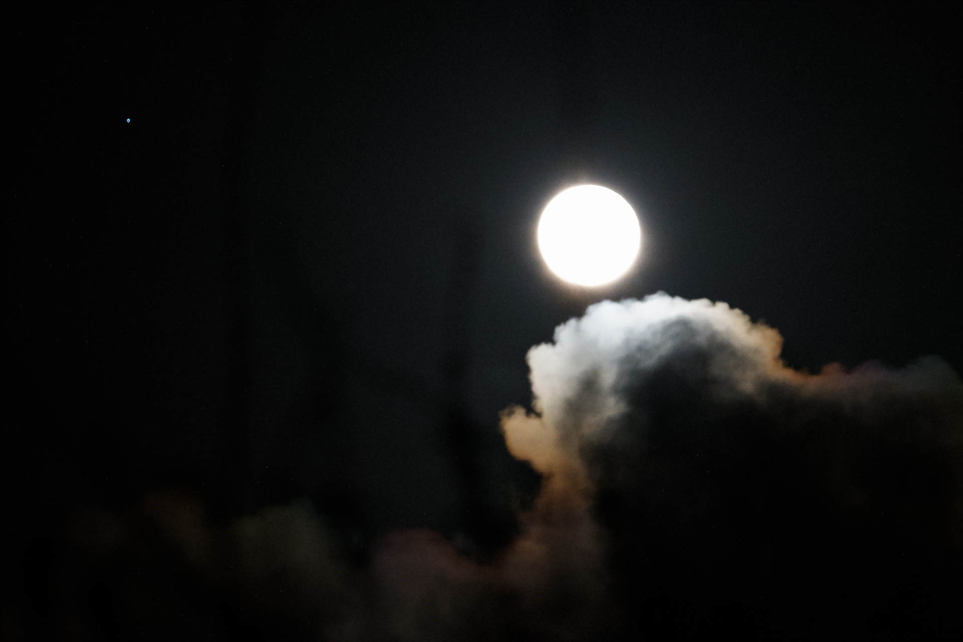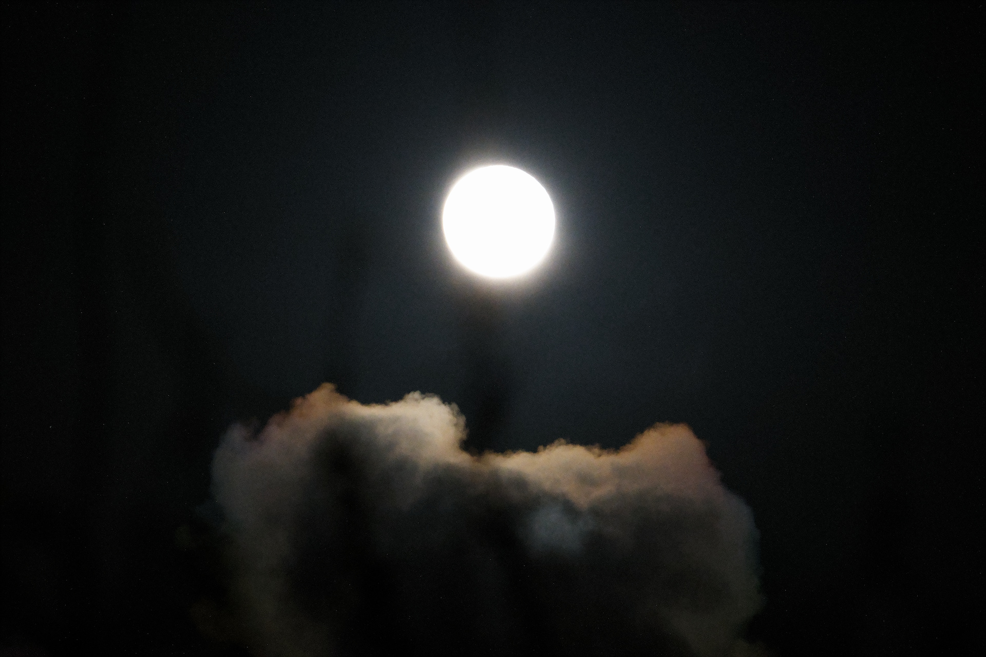 So, yesterday, full moon, still havenât taken a decent picture of it, and still havenât received the collar for the 50-400mm⌠Hand-held it was, and I had to be really quick about it because that cloud was zipping past rather quickly. It was gone a couple of minutes later. So of course I completely blew out the moon like the gigachad that I am.