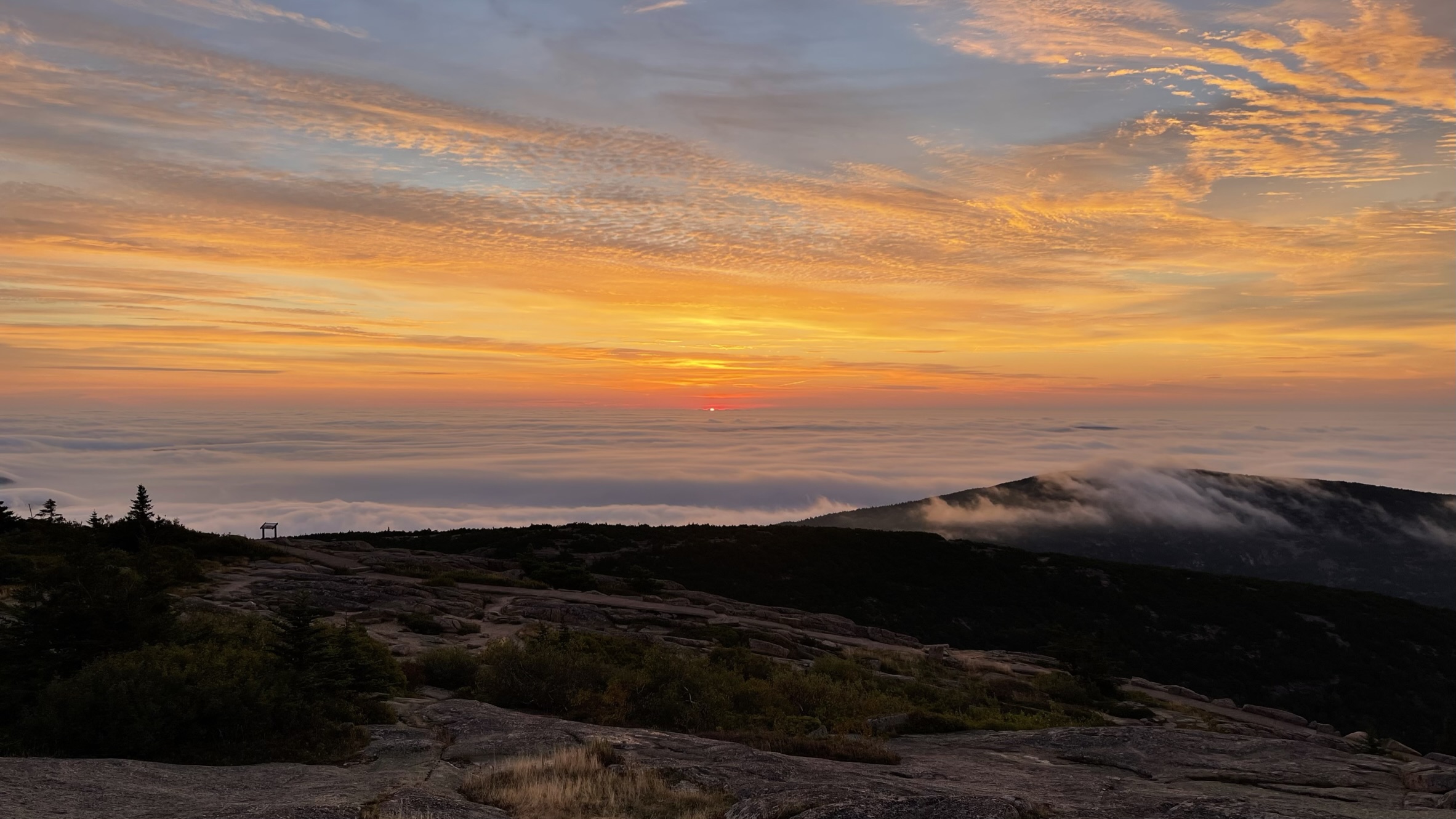 I was just looking through some old photos, and I really like these. They are as-cooked by an iPhone 13 Pro Max. They were taken at sunrise from the top of Cadillac Mountain in Acadia National Park, Maine.