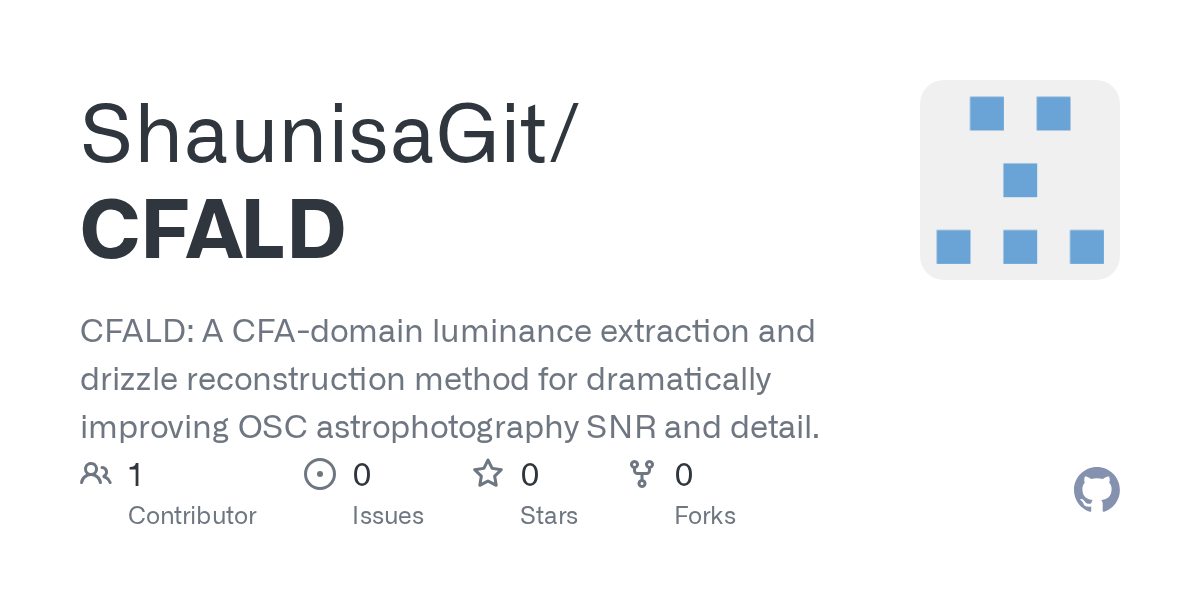 [ShaunisaGit/CFALD: CFALD: A CFA-domain luminance extraction and drizzle reconstruction method for dramatically improving OSC astrophotography SNR and detail.