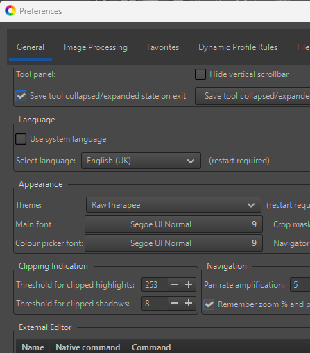 It may have already been answered, but I couldn’t find it. I mostly use darktable but I do occasionally take a trip to rawtherapee and ART. What confuses me is that in rawtherapee the shadow indicator shows that the shadows are clipped much earlier than they should be (in darktable it is as it should be, i.e. when the shadow touches black). When I zoom in on the image 1:1 I see that it is still far from black, but the indicator shows that are clipped. I’m not that familiar with rawtherapee so maybe my question sounds beginner-like, but still…I would like to know. The highlights indicator works exactly as it should, shadow don’t.