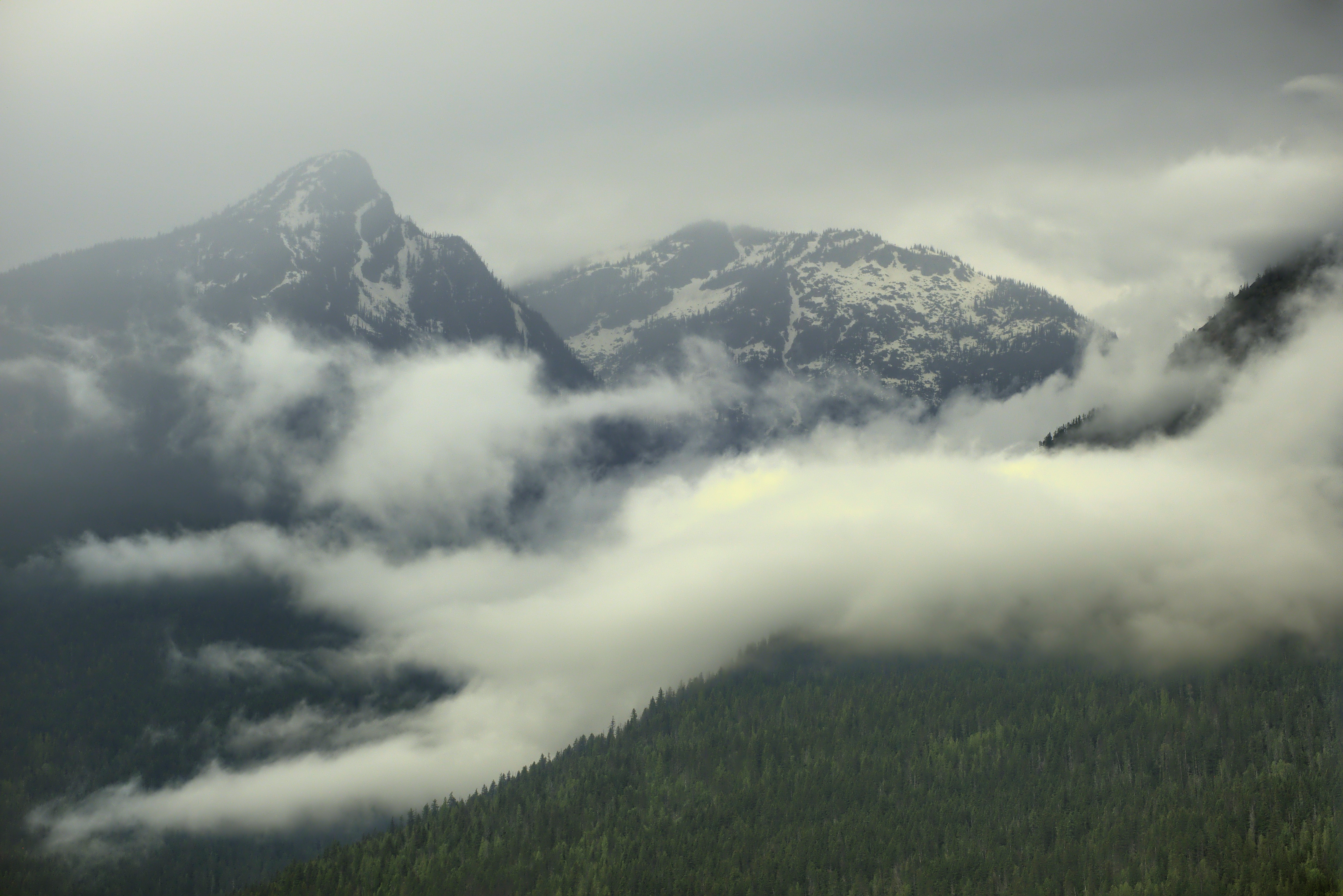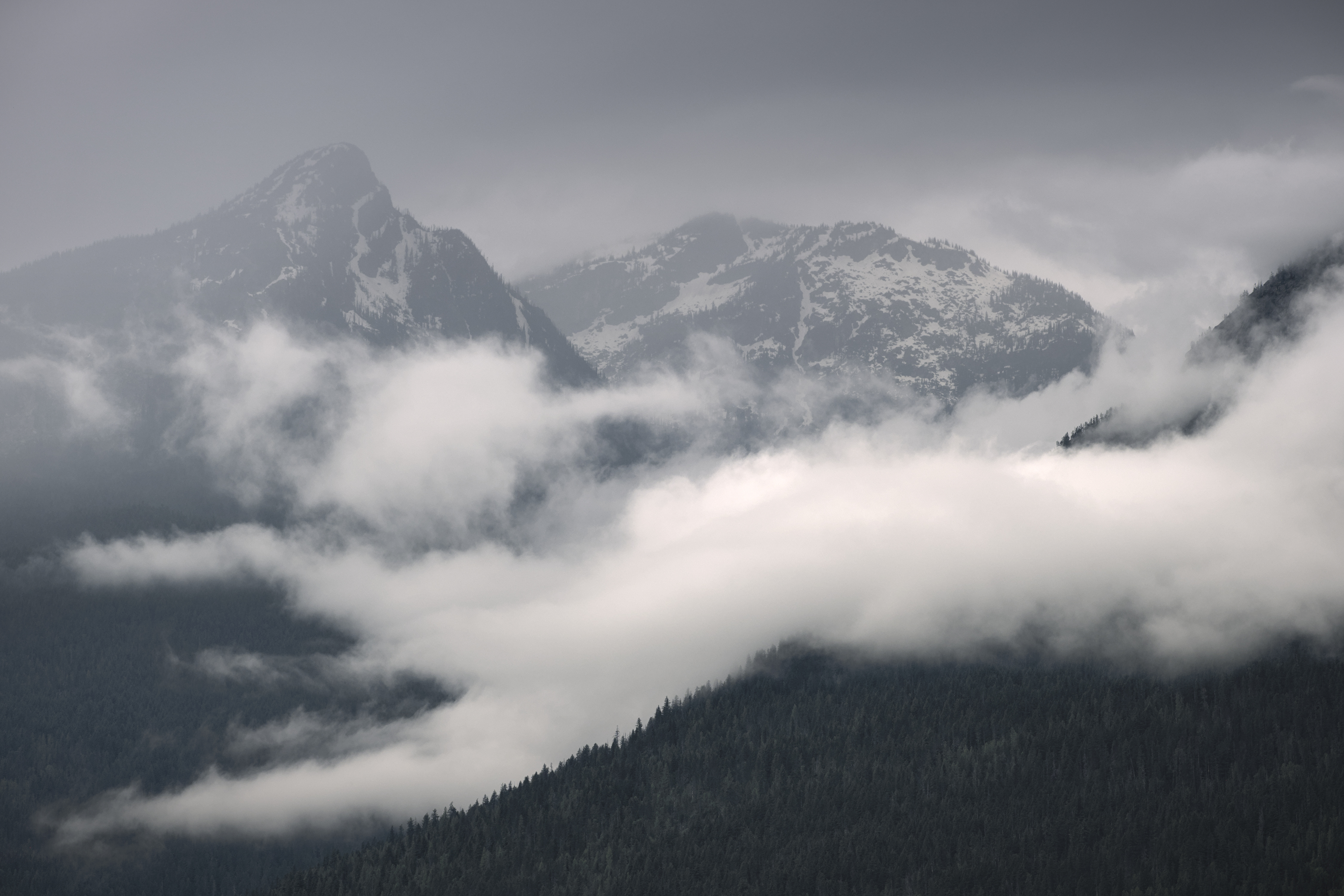 Here is an image I took last summer from a roadside in British Columbia. I like its low dynamic range and its hazy qualities, but not sure if I could make a wall-worthy picture of it. I’m interested what people would do with a shot like this that has a lot of haze and very little colour. Although converting it to black and white is a nice option, I’m particularly interested in colour versions of it, because colour grading is something that doesn’t come easily to me, yet I love it when I see a photo that nails it. Have fun with it!