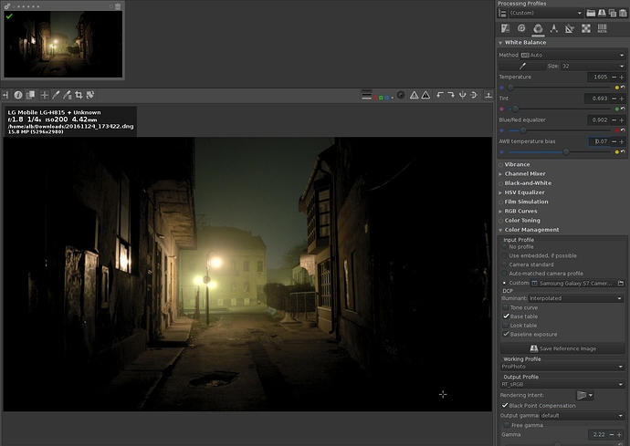 Actually, the photo I posted is the first HPS illuminated scene I found to be good enough to be shown to people, and the others had never been processed before. This is why I hadn’t noticed that RT has no problem with them, and values around 1900 already pseudo-neutralize the orange color. It’s a camera support issue, not a general problem with RT!