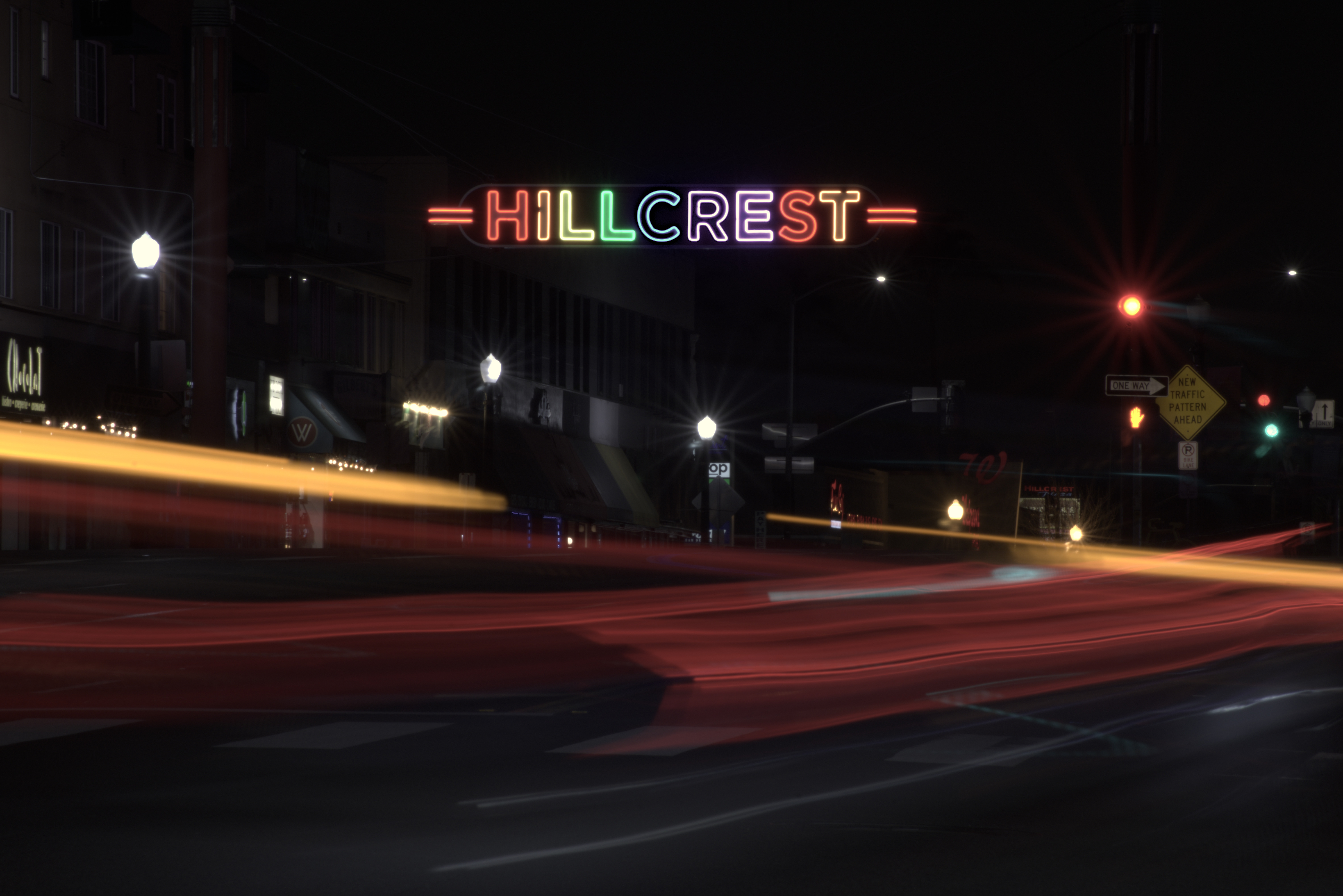 A colour card, placed in that scene, illuminated by those saturated lights, might give useful information. Failing that, a simple gadget could be built with red, green and blue LEDs. Photograph that, then figure out what input matrix puts the results inside the horseshoe at least, and preferably inside the Rec2020 gamut.
