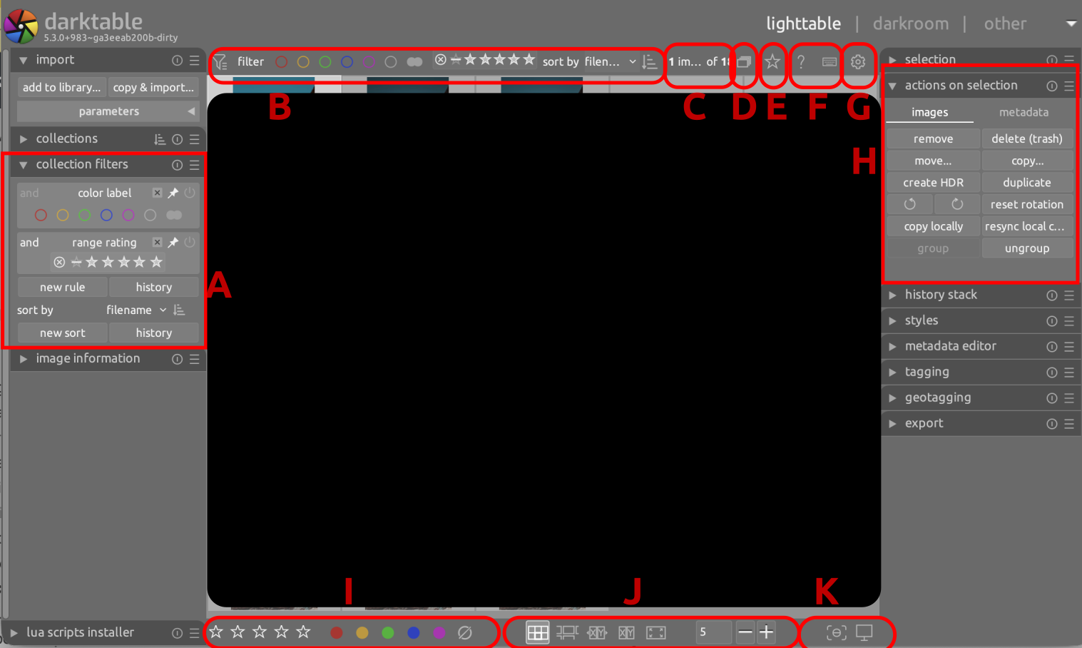 Top toolbar no longer needed, F and G repositioned somewhere else, possibly on the very top (next to the âdarktableâ logo) or in the bottom toolbar